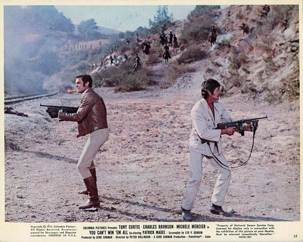 Les baroudeurs est à l’image des autres films du réalisateur : une œuvre populaire, généreuse, ne cherchant pas à péter plus haut que son cul mais simplement à distraire, à divertir le spectateur pendant un peu plus d’une heure et demi. Et le moins que l’on puisse dire, c’est que le contrat est pleinement rempli : les décors sont aussi exotiques que dépaysants (le récit se déroule durant la guerre civile turque, et a été intégralement tourné en Turquie), le rythme est trépidant, les rebondissements nombreux… Les deux acteurs principaux, Charles Bronson et Tony Curtis, s’en donnent littéralement à cœur joie : les interactions entre les deux personnages sont savoureuses, et pourront préfigurer en quelque sorte celles que le public découvrirait l’année suivante dans Amicalement vôtre – les connexions se feront d’autant plus vite dans nos esprits que les deux personnages sont doublés par Michel Roux en version française. Charles Bronson, qui sortait tout juste de son rôle de l’homme à l’harmonica dans Il était une fois dans l’Ouest, est tout particulièrement surprenant dans la peau de ce mercenaire jouant volontiers de ses poings et enchainant les plaisanteries – on le voit notamment très souvent rire ou sourire, ce qui n’est finalement pas si habituel dans sa filmographie ! Il n’est finalement pas étonnant d’apprendre qu’à l’origine, le rôle de Bronson était prévu pour le sémillant Jean-Paul Belmondo… Aux côtés de ces deux monstres sacrés, on retrouvera également Michèle Mercier qui, en 1970, vivait les derniers sursauts de sa carrière d’actrice, et s’avère impeccable dans la peau de la « garce » de service (on avouera que comme beaucoup de films de l’époque, Les baroudeurs pourra être considéré aujourd’hui comme un peu misogyne). Un vrai petit film « plaisir » à (re)découvrir !
