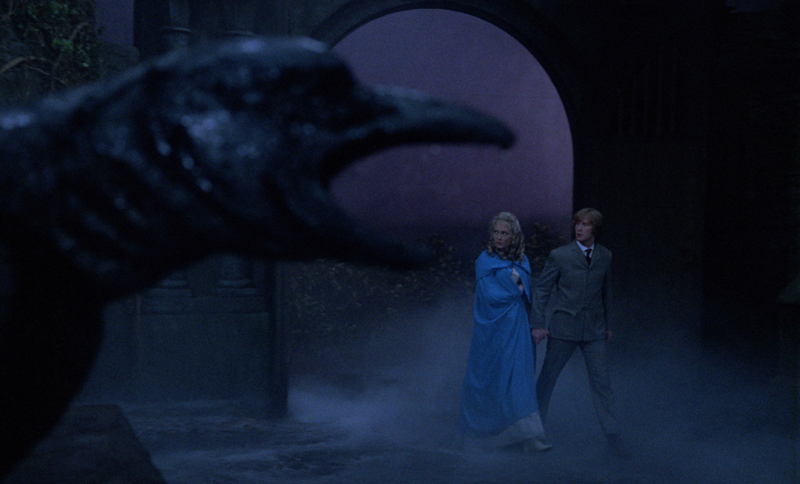 Au-delà de ces outrances, qui paraîtront néanmoins bien innocentes au public contemporain, on notera le soin apporté par Roy Ward Baker à tenter de redorer le blason gothique de la saga. En effet, malgré un budget réduit, Les cicatrices de Dracula développe une atmosphère solide, grâce notamment à un cadre et à certains décors ou effets saisissants, tels que ce matte-painting impressionnant, montrant un château construit à flanc de falaise. On retiendra également la noirceur et le sadisme affiché de l’ensemble, qui, au-delà des trouvailles visuelles, confèrent au vampire du film une aura peut-être encore plus trouble et maléfique qu’à l’accoutumée. Qui se serait attendu, par exemple, à voir un Christopher Lee littéralement possédé larder de coups de couteau le corps d’une de ses servantes ?
