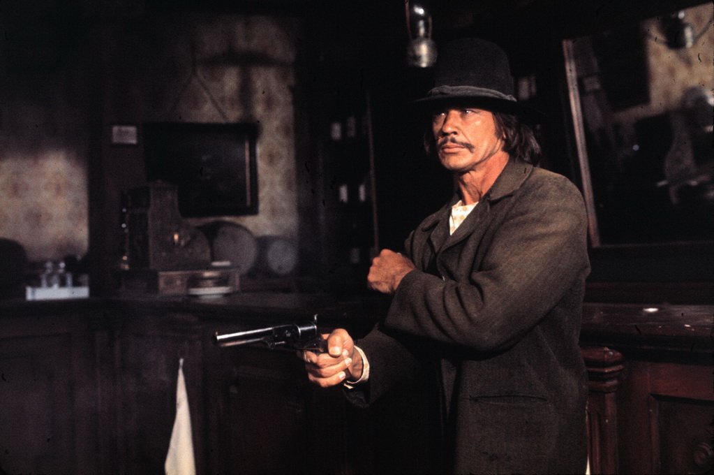 La première qualité de ces Collines de la terreur réside dans la qualité de la caractérisation de ses personnages. Le personnage de l’indien, Chato, incarné par Charles Bronson, est un être taciturne n’ayant à son actif que quelques lignes de dialogues (et pour la plupart même pas en anglais !). S’il n’est probablement même pas le plus « important » du film en termes de présence à l’écran, il s’impose comme le véritable héros de l’histoire racontée par Michael Winner, non seulement par le fait d’être celui qui est traqué par cette bande de cowboys littéralement assoiffés de sang, mais également parce qu’il s’avère le protagoniste le plus « positif » du métrage. Habile, le scénario construira son personnage au fur et à mesure du récit, mais finalement moins par ses propres actes que par les divisions qui se créent au sein du groupe de « méchants » (mené par un Jack Palance tout en nuances), qui permettront non seulement de caresser leur « humanité » de façon très fine, mais permettront également de donner une épaisseur inattendue au personnage de Bronson, qui n’apparaitra plus seulement comme un ange de la mort mais comme un être humain, victime d’une punition semblant bien sévère au regard du crime qu’il a commis.