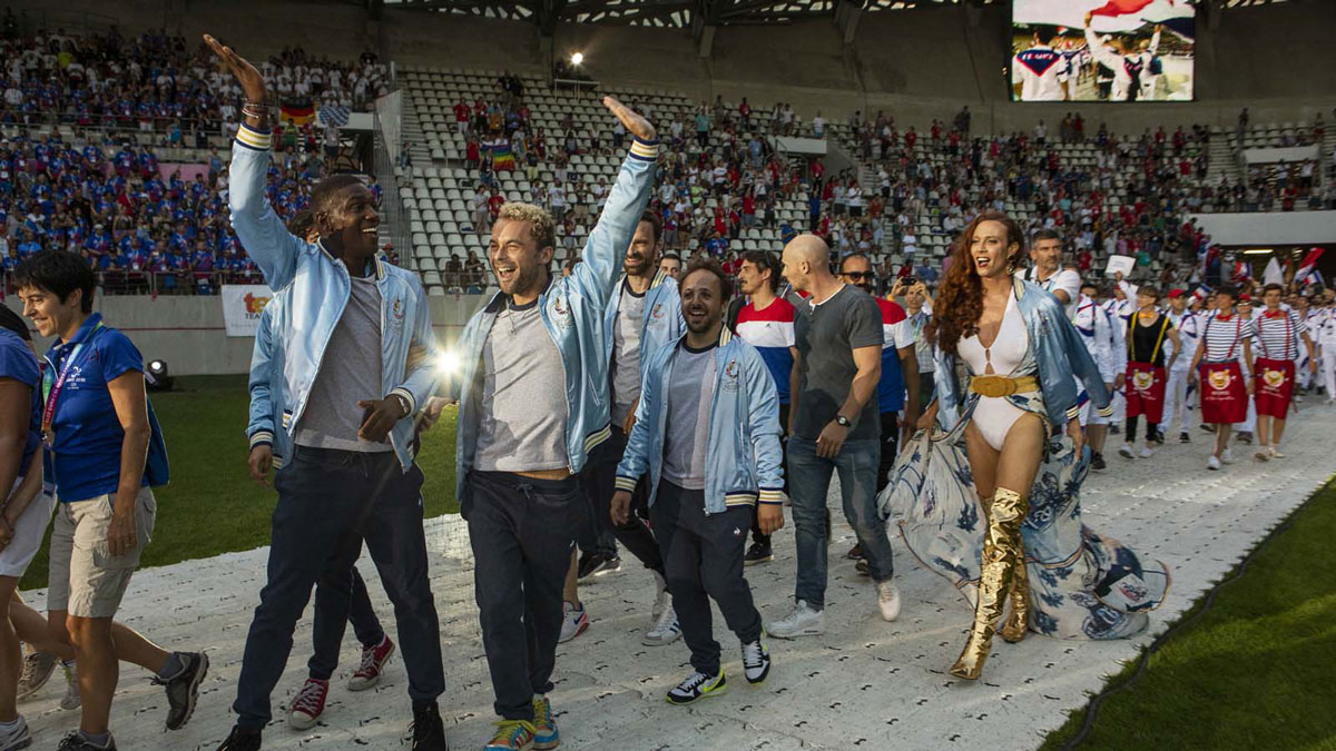 Du côté des suppléments, on commencera tout d’abord avec une galerie d’affiches, reprenant les affiches rejetées par la production ainsi que les celles utilisées pour l’exploitation du film à l’international. On continuera ensuite avec un court making of (6 minutes), qui compile quelques extraits du tournage et les propos des acteurs et des deux réalisateurs, selon lesquels la découverte de cette équipe de water-polo gay a littéralement changé leur vie. Les mêmes propos ou presque seront réitérés par les cinéastes dans un micro-sujet (une minute et 28 secondes) consacré au Festival international du film de comédie de l’Alpe d’Huez, où Les crevettes pailletées a obtenu le prix du jury. Enfin, on terminera avec quelques images tirées de la présentation du film lors de l’avant-première au Grand Rex (2 minutes), qui nous permettra d’entendre les retours très enthousiastes du public présent dans la salle.
