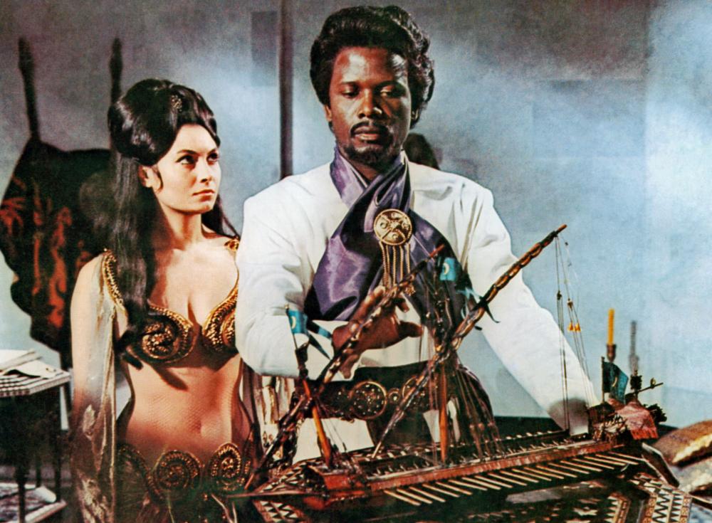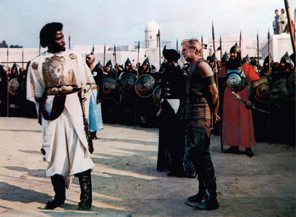 La grande idée de ce petit film d’aventures est d’opposer, à la façon des aventures d’Asterix par exemple, une poignée de vikings en perdition (menés par Richard Widmark et Russ Tamblyn) à un riche cheikh (Sidney Poitier), secondé par son harem et son armée. Tous se battront (pour de rire) pour mettre la main en premier sur une énorme Cloche d’or fondue à partir de l’or pillé par les croisés à Constantinople. Sur un arrière-plan de choc des cultures, tout dans le film de Jack Cardiff sera donc finalement prétexte à grosses bagarres, cascades bon enfant et scènes de gaudriole, sur un rythme proprement ébouriffant.