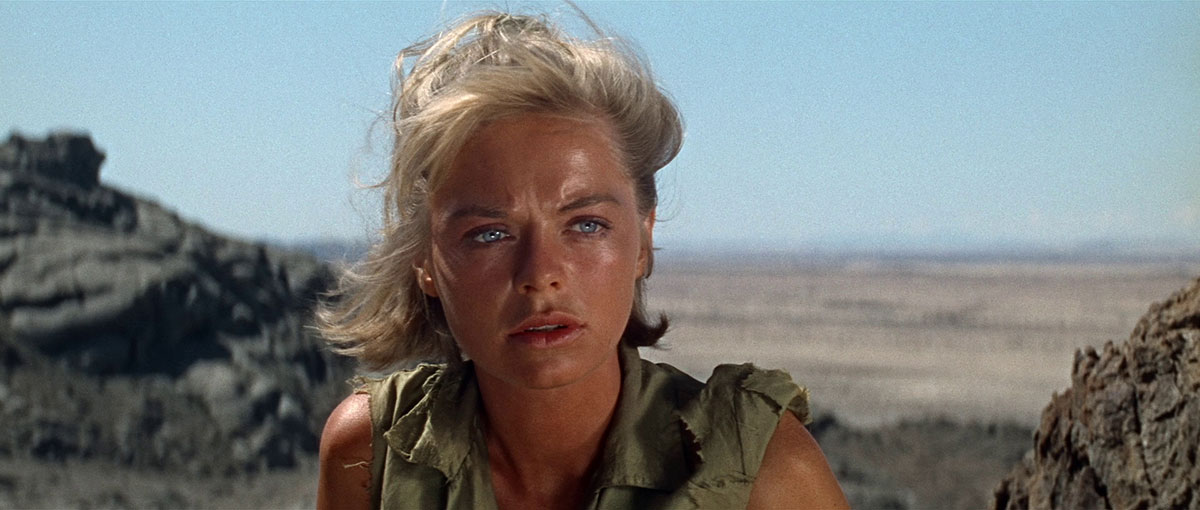 Dans Les Sables du Kalahari, les personnages semblent sculptés par le vent, chacun révélant ses fissures au fil des plans larges qui avalent l’horizon. Le film joue avec la lumière comme un chat avec un laser, mais avec plus de dignité : les ombres s’allongent, les silhouettes se découpent, et soudain la caméra capte un éclat de folie dans l’œil d’un survivant, comme si le désert lui murmurait des secrets pas très catholiques. Les Sables du Kalahari explore ainsi la frontière fragile entre civilisation et animalité, un thème déjà présent dans La Planète des Singes (version 1968), mais ici traité avec une sécheresse presque documentaire. Et si les dialogues fleurent bon une misogynie typique des années 60, cet élément renforce encore un peu plus la logique brutale du récit, sans être désamorcée ni transformée en morale de fin de soirée.