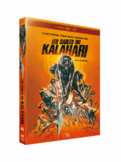 Les Sables du Kalahari vient de débarquer au format Blu-ray, sous les couleurs de Rimini Éditions. Comme à son habitude, l’éditeur nous propose ici une restauration qui respire autant que les dunes filmées par Cy Endfield. L’image du film affiche une précision remarquable : les visages burinés, les roches, les poils des singes — tout semble avoir été poli par un vent numérique bienveillant. Les couleurs restent naturelles, sans excès de saturation, et le grain argentique a été parfaitement respecté, donnant au film une texture organique qui rappelle son époque. Quelques plans issus de sources secondaires paraissent un peu plus doux, mais rien qui ne vienne perturber l’ensemble. Les Sables du Kalahari bénéficie ainsi d’un rendu Haute-Définition solide, stable, et parfaitement adapté à son ambiance sèche et minérale. Côté son, le Blu-ray nous est proposé en VF + VO et DTS-HD Master Audio 2.0. La version française, un peu étriquée, laisse parfois la musique prendre le dessus, mais les dialogues restent clairs et audibles. La version originale se montre plus ample, plus respirante, avec une dynamique mieux équilibrée. Les bruits du désert, les cris des singes, les rafales de vent gagnent en présence, sans jamais devenir envahissants. Les Sables du Kalahari trouve dans cette piste originale un écrin sonore cohérent, respectueux de l’œuvre et agréable à écouter.