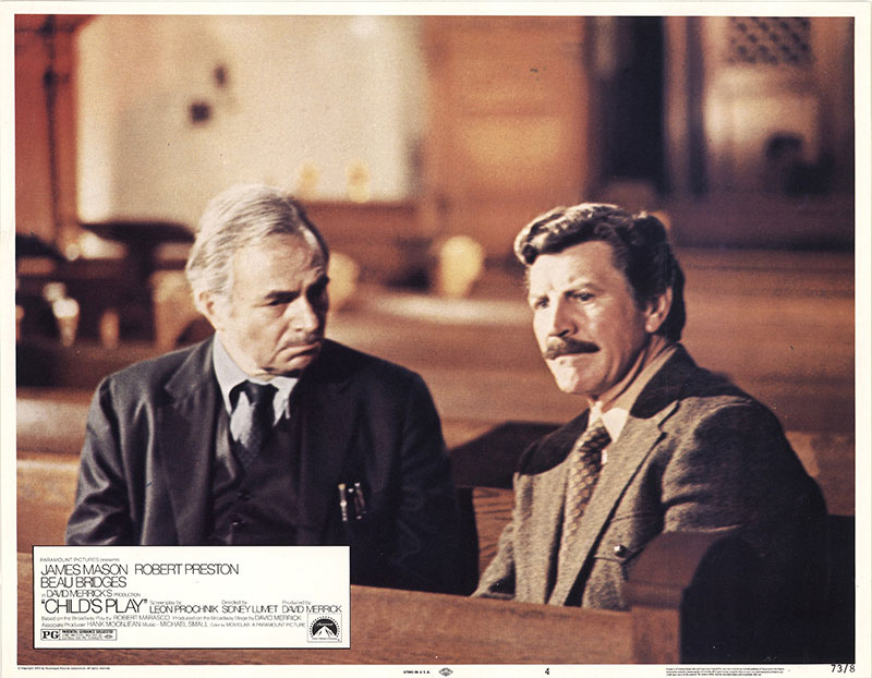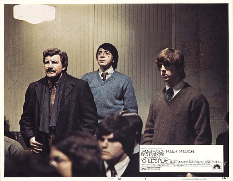 Adapté d’une pièce de Broadway à succès signée Robert Marasco (auteur du roman dont sera adapté l’excellent Trauma, disponible chez Rimini Éditions), Les yeux de Satan met donc en scène l’affrontement sans merci entre deux professeurs ne partageant pas la même vision de l’éducation, incarnés à l’écran par Robert Preston et James Mason. Si le film développe indéniablement une atmosphère fantastique, principalement orchestrée par un recours vraiment habile de Sidney Lumet à la musique, la thématique centrale des Yeux de Satan va en réalité d’avantage chercher du côté de la notion d’influence, et le cœur du récit mettra avant tout en scène la lutte d’influences qui opposera Dobbs (Robert Preston) et Malley (James Mason), cette dernière étant en quelque sorte « arbitrée » par le personnage incarné par Beau Bridges, fils de Lloyd, frère aîné de Jeff, et qui était alors considéré comme un acteur à suivre.