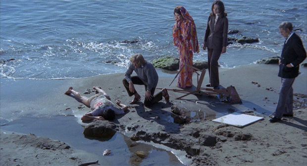 L’île de l’épouvante nous propose donc un jeu avec des corps interchangeables avec des objets, et bien sûr, la caméra elle-même finit par faire partie du discours. Zooms et dézooms en pagaille, travellings vertigineux, jeux de perspective… Tout est conçu par Bava pour faire de son film un manège sadique, doublé d’un sublime exercice de style.