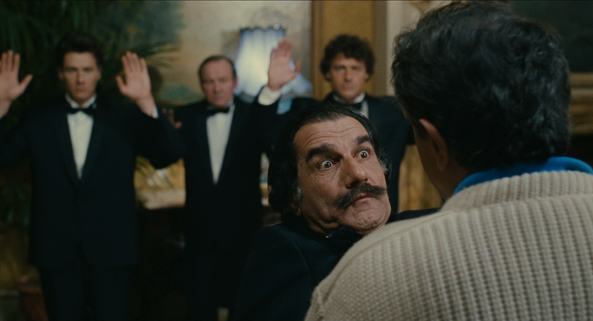 Le fait de développer un récit policier décousu et déconnecté de la réalité ne plombe pas le film en tant que tel ; en fait, L’invité surprise aurait tout à fait pu fonctionner sur ce principe, mais il aurait fallu à ce moment-là opter pour une intrigue totalement cartoonesque, et aller encore plus loin dans le côté délirant de l’entreprise. En l’état, le film de Lautner semble surtout avoir le cul entre deux chaises, et ne jamais réellement se décider dans quelle direction partir. C’est d’autant plus triste que Georges Lautner semble réellement s’ennuyer à filmer ses acteurs, livrant une réalisation désespérément plate une fois passé le prologue du film, vivant et très intéressant. Certaines séquences tirent donc tout de même leur épingle du jeu : le prologue sur l’émission de TV, la séquence avec Gérard Hernandez reprenant la bande sonore des Tontons Flingueurs, les scènes autour du trio composé par Jean Carmet, Jacques François et Michel Galabru…