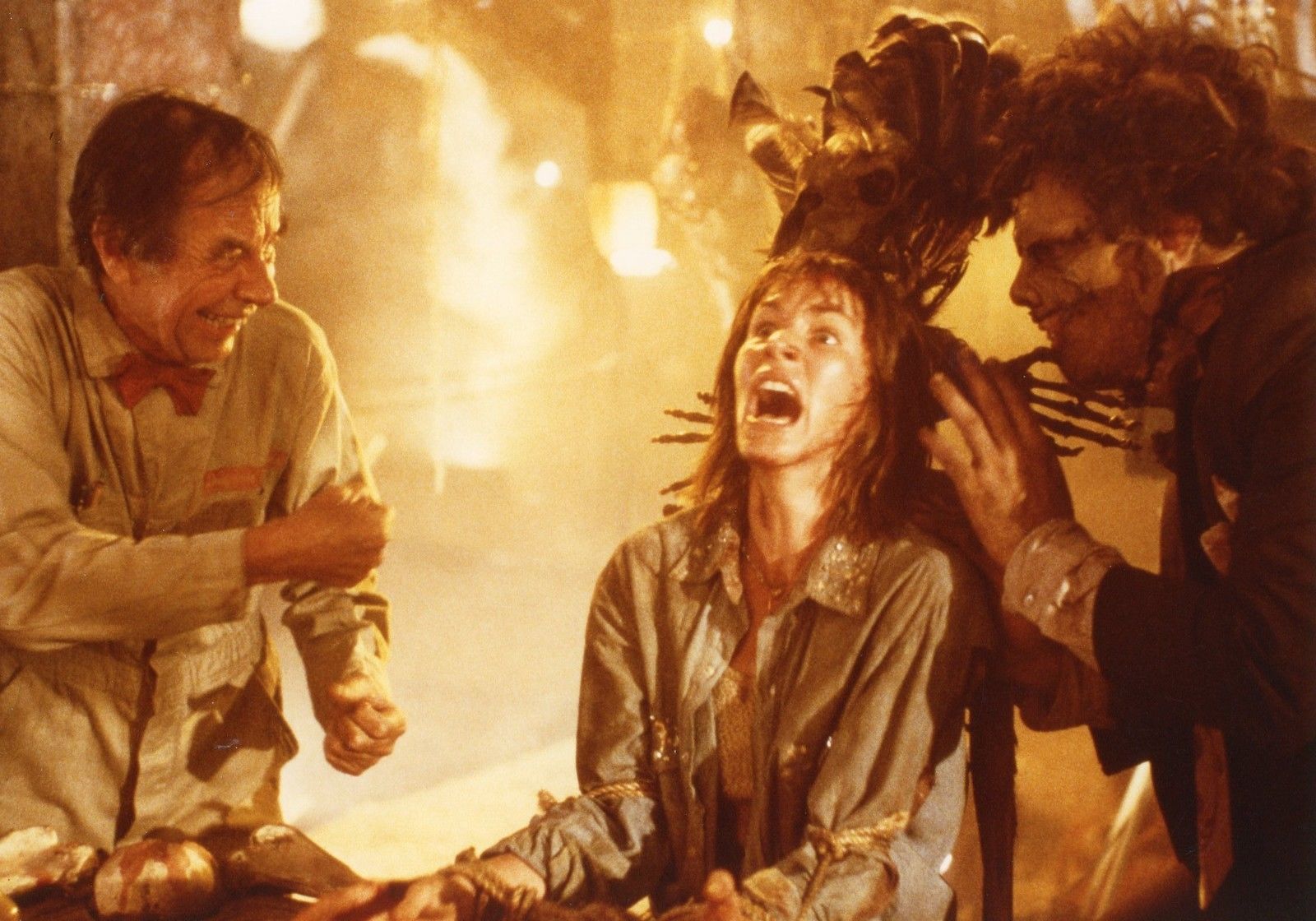 Pour celles et ceux qui, à l’image de l’auteur de ces lignes, n’avaient pas eu l’opportunité de revoir Massacre à la tronçonneuse 2 depuis sa sortie en salles dans les années 80, préparez-vous à un choc. Vous vous souveniez sans doute d’un film bien barré : il l’est resté, définitivement. En revanche, ce qui surprendra énormément le spectateur contemporain redécouvrant en 2019 le film de Tobe Hooper, c’est sa modernité, et l’influence qu’il a pu avoir sur l’un des plus grands cinéastes du genre horrifique depuis le tournant des années 2000 : Rob Zombie. Curieusement, la filiation entre Massacre à la tronçonneuse 2 et La maison des 1000 morts, qui paraît pour le moins évidente à la revoyure du film de Hooper, ne nous était jusqu’ici jamais apparue – aujourd’hui, elle nous saute littéralement au visage. Bien sûr, il ne s’agit pas de la seule source d’influences de Rob Zombie, mais elle est tout de même extrêmement présente : on retrouvera dans le design des souterrains où officie le Dr. Satan des réminiscences du repaire de la famille « Tronçonneuse », et d’une façon plus générale, le ton du film de Rob Zombie, ainsi que la mise en place de sa famille de chtarbés, fera également écho au film de Tobe Hooper. Néanmoins, La maison des 1000 morts conserve une originalité et une classe folles, déployant de plus un travail sur l’image et le son qui l’ont transformé en classique immédiat. Ce statut de classique du genre horrifique, Massacre à la tronçonneuse 2 aura en revanche mis quelques années avant d’y accéder : le film a longtemps été considéré comme trop « fou », et surtout trop éloigné du premier film de la franchise.