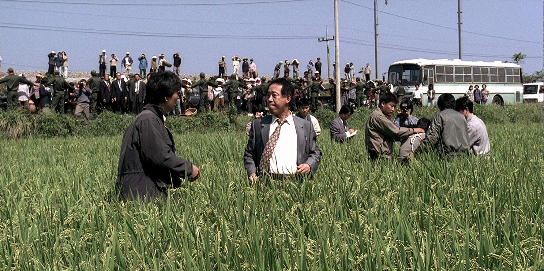 Lorsque l’action du film commence, le 23 octobre 1986, la Corée du sud se situe dans une période un peu floue de son histoire politique : le dictateur Park Chung-hee a été assassiné le 26 octobre 1979 mais le général Chun Doo-hwan qui est alors à la tête de l’état ne vaut guère mieux et il faudra attendre encore quelques années pour qu’un régime vraiment démocratique trouve sa place en Corée du sud. Par contre, lorsque Joon-Ho Bong réalise Memories of murder, la démocratie s’est enfin installée dans le pays ce qui explique sans doute la façon dont le réalisateur dépeint son pays dans son film : un pays qui vit au rythme des alertes causées par les sempiternelles bisbilles avec la Corée du nord, un pays dont la police semble tout à la fois très violente et particulièrement incompétente. Un jugement que le cinéma coréen ne manquera pas, par la suite, de renouveler à plusieurs reprises!