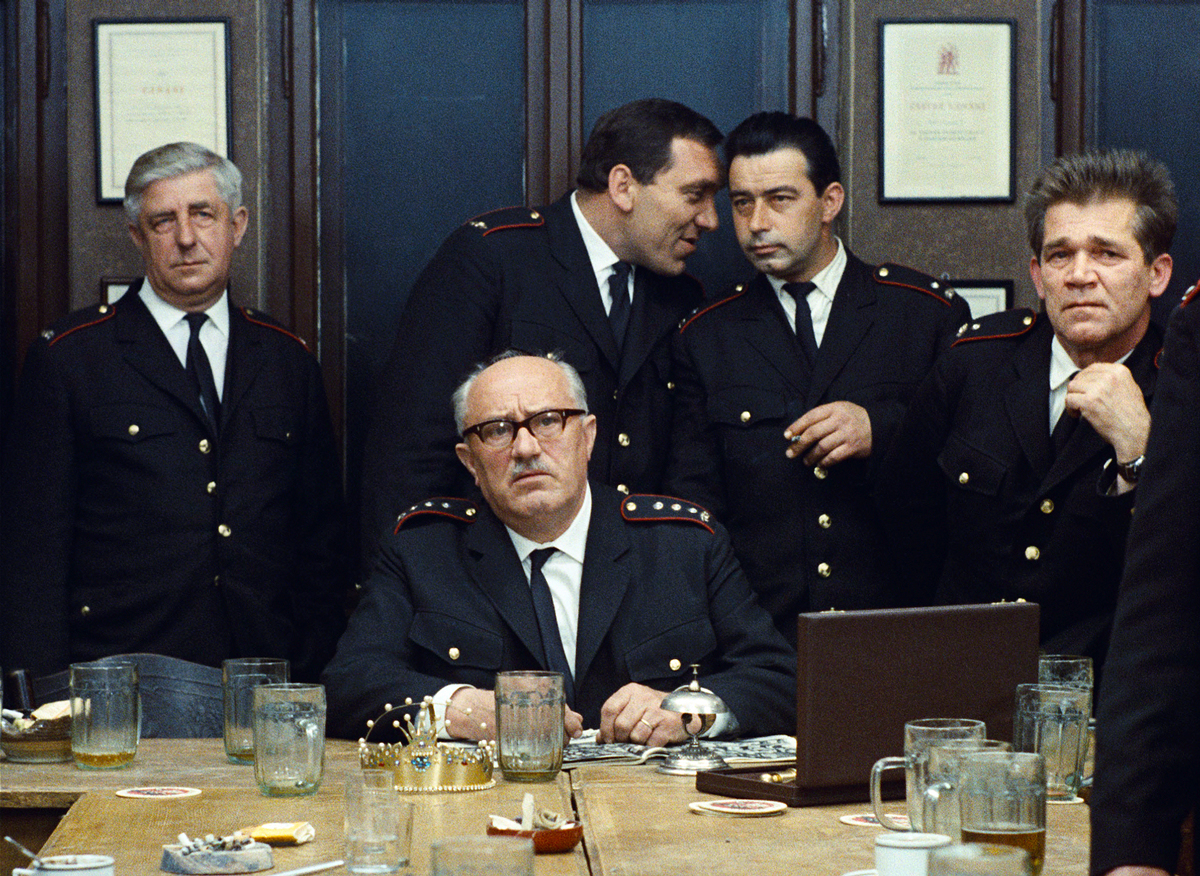 Évoluant d’avantage dans le registre de la comédie pure que les autres films disponibles au sein du coffret, Au feu les pompiers s’avère une petite perle d’humour absurde absolument rafraîchissante. Malgré le côté vaguement éculé de certains gags, le film de Forman développe en effet une mécanique du gag parfaitement solide, pleine d’éléments farfelus et vraiment drôles. Mais sous son apparence de slapstick gentiment délirant, Milos Forman continuait tout de même son œuvre sous-jacente de démontage en règle du système communiste dominant la Tchécoslovaquie des années 60. Les gags s’enchaînent à une vitesse folle, le plus fort est que certains d’entre eux n’ont vraiment rien perdu de leur force plus de cinquante ans après (le bar installé devant l’incendie, le plan final surréaliste…). Satire mordante tournant en ridicule la bureaucratie et les autorités du pays, Au feu les pompiers a fait grand bruit dans son pays d’origine lors de sa sortie, au point même que 40.000 pompiers aient menacé de déclencher une grève générale.