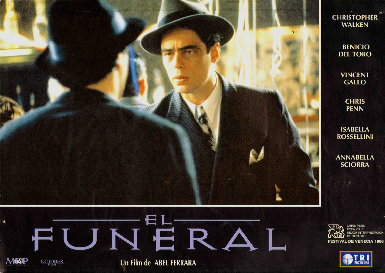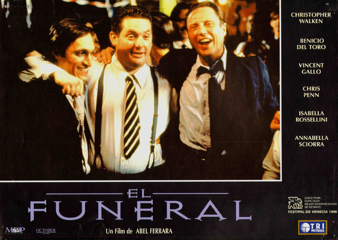 Après avoir abordé la science-fiction (Body snatchers) et les vampires (The arrival), Ferrara et St. John reviennent au genre qui les a fait connaître : le polar. Mais ne désirant pas forcément être là où on les attend, ils abandonnent le New York urbain et poisseux des années 80/90 pour aborder le genre sous un autre angle : celui des familles mafieuses des années 30. Mais ce qui intéresse Abel Ferrara et son scénariste ne se situe pas dans la reconstitution fastueuse d’une époque révolue : c’est bel et bien à un drame humain que l’on assistera ici. Filmé au plus près des personnages, porté par une interprétation sans faille (Chris Penn, Christopher Walken, Benicio Del Toro, tous incroyables), Nos funérailles embarque le spectateur dans une descente aux enfers familiale autour du cercueil de l’un des leurs, et se permet un déboulonnage en règle -et de l’intérieur- de 25 ans de mythes liés aux films de mafia. En effet, tous les personnages sont présentés ici sous leur jour le plus « humain », et on ne pourra s’empêcher de les trouver tour à tour attendrissants, minables ou tout simplement paumés. Certains se raccrocheront à la religion (un des thèmes forts du film), d’autres compenseront en se prenant pour Dieu : l’entreprise de démystification de la famille mafieuse fonctionne parfaitement, aidée par des dialogues vraiment brillants et une construction en flash-backs plutôt habile.