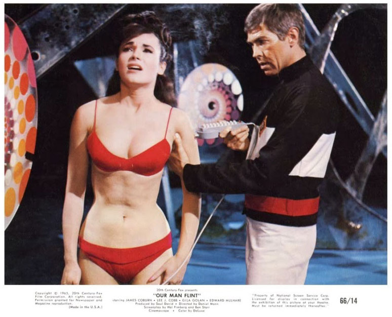 Notre homme Flint est donc un petite bande d’espionnage et d’humour sans prétention, qui se regarde aujourd’hui avec un détachement et un plaisir non feints : vestige d’une époque où l’on osait tout et n’importe quoi sous couvert d’espionnage, le film enquille les moments de bravoure surannés dans une bonne humeur réjouissante. Le décalage lié à l’époque donne au spectateur un sourire de bon aloi durant toute la durée du film, le sourire laissant occasionnellement la place à un rire franc, surtout lors de la dernière partie du film, colorée, barrée et fun. Le plaisir est donc bel et bien de la partie : la mise en scène est sobre et sans surprises, mais s’avère portée par des décors et un production design efficace, et la musique de Jerry Goldsmith assure le show sur des airs aussi entraînants que groovy. Spectacle familial, rafraîchissant et résolument sympathique, Notre homme Flint à donné naissance à deux suites : F comme Flint (Gordon Douglas, 1967) et Dead on target (Joseph L. Scanlan, 1976).