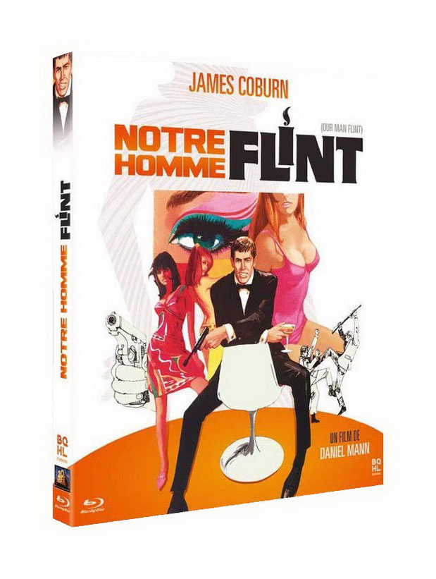 Avec le Blu-ray de Notre homme Flint, les équipes de BQHL confirment tout le bien que l’on pensait déjà d’eux, malgré une présentation technique minimale. En effet, si le menu ne propose que le choix des langues et si le chapitre se fait de façon aléatoire toutes les deux minutes de film, côté master, le rendu visuel est assez sublime : le piqué est d’une belle précision, la définition est sans accroc, les couleurs en envoient plein les mirettes des spectateurs, les noirs s’avèrent denses et profonds, et le grain cinéma a été subtilement préservé. Côté son en revanche, si le film ne bénéficie pas d’un mixage HD, il s’impose néanmoins dans un solide Dolby Digital 2.0 mono d’origine qui fait le boulot sans en faire trop, que vous choisissiez de le voir en VF ou en VO anglaise, avec des sous-titres français. Pas de suppléments.