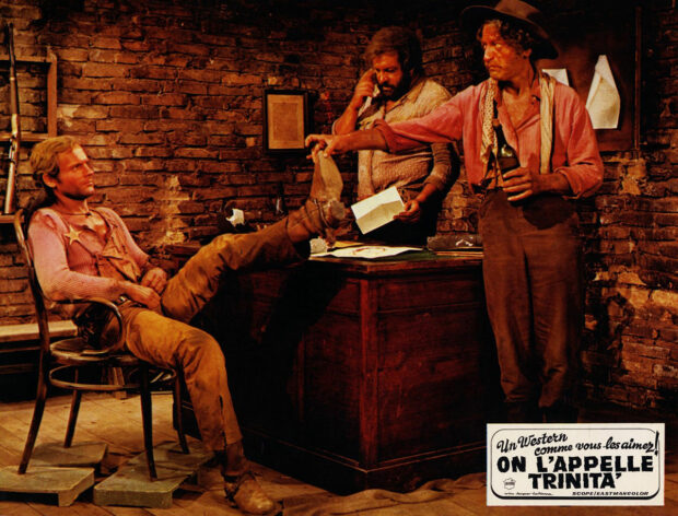 Ainsi, l’une des plus grandes forces d’On l’appelle Trinita réside dans sa capacité à rester léger sans devenir creux. Le film ne cherche pas à délivrer un message profond, mais il capte quelque chose de l’époque : une envie de relâcher la pression, de rire des figures d’autorité, de transformer les codes virils en terrain de jeu. Le western, genre historiquement sérieux, devient ici un espace de liberté où l’on peut se moquer des méchants, des colons, des pistoleros trop sûrs d’eux. On l’appelle Trinita reflète ainsi une époque où le cinéma populaire commence à s’autoriser des écarts, à mélanger les genres, à casser les poses héroïques. Le film n’est pas politique, mais il respire l’air du temps, celui d’une société qui commence à préférer les antihéros aux statues de marbre.