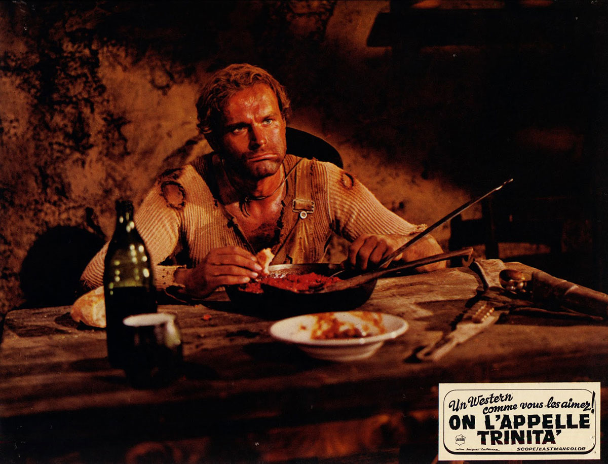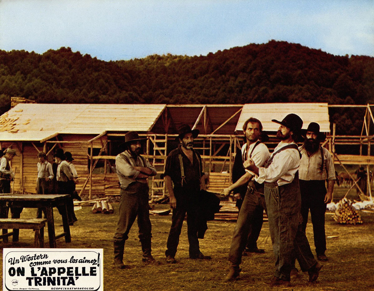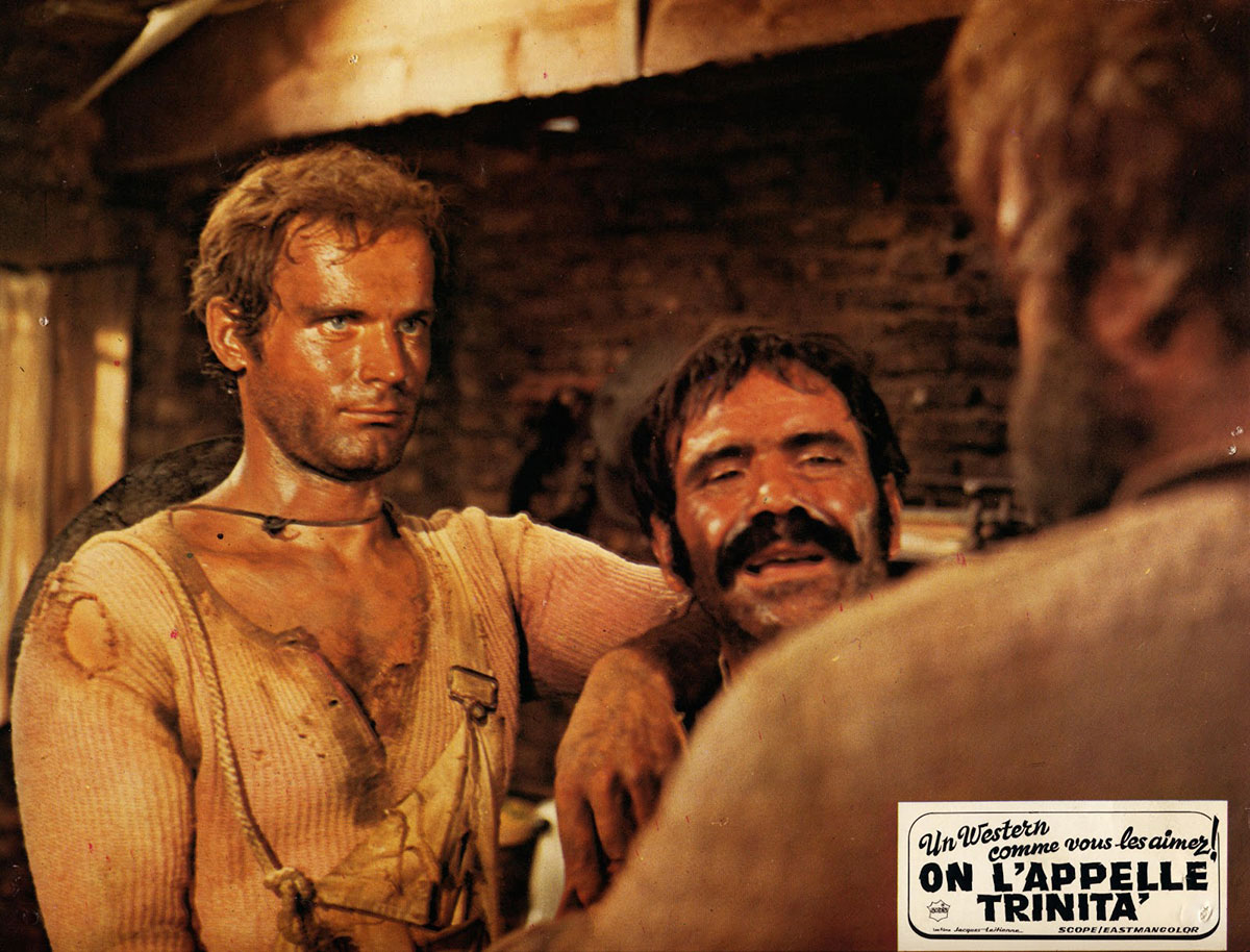 Cette tonalité légère n’empêche pas On l’appelle Trinita d’être un vrai western. Les décors, les costumes, les cadrages héritent directement du spaghetti italien, avec ses paysages arides, ses villages poussiéreux et ses méchants moustachus qui semblent avoir été sculptés dans du cuir tanné. Mais le film détourne ces éléments pour en faire des ressorts comiques : un méchant trop sûr de lui devient un punching-ball humain, un duel trop long se transforme en numéro burlesque, une bagarre de saloon vire à la danse folklorique. Le western, ici, n’est pas moqué : il est célébré, mais avec un sourire en coin. On l’appelle Trinita rappelle que le cinéma populaire peut se réinventer sans perdre son âme, simplement en changeant de ton.