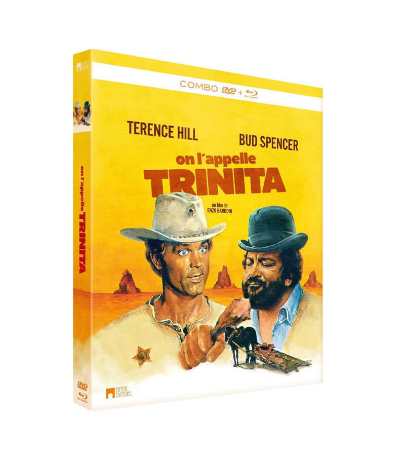 Le Blu-ray d’On l’appelle Trinita édité par Rimini Éditions débarque dans un boîtier surmonté d’un étui, avec jaquette réversible et trois photos format carte postale. L’objet respire le respect du patrimoine populaire : couleurs chaudes, visuels iconiques, et ce petit parfum de collection qui donne envie de le laisser traîner sur la table basse juste pour frimer un peu. La galette nous propose la version française de 1982, basée sur le montage italien de 115 minutes, un choix judicieux qui permet de profiter du film dans sa forme la plus complète tout en conservant le doublage culte. Côté image, le transfert Haute-Définition du film d’Enzo Barboni est une belle réussite. Il nous offre une définition solide, un piqué agréable et une texture argentique homogène. Les couleurs chaudes, typiques du western italien, ressortent avec une belle vivacité, sans excès. Les noirs sont soutenus, les contrastes équilibrés, et les scènes en basse lumière conservent une lisibilité appréciable. La copie est propre, sans poussières ni rayures visibles, et l’étalonnage respecte parfaitement l’esprit du film. Côté son, On l’appelle Trinita propose deux mixages DTS-HD Master Audio 2.0 (mono), en anglais et en français. Les deux pistes sont claires, dynamiques, sans souffle notable. La version anglaise offre une restitution fidèle des voix postsynchronisées et de la musique de Franco Micalizzi, avec une belle présence dans les bagarres et les cavalcades. La version française de 1982, avec les voix de Patrick Poivey et Michel Barbey, n’a pas à rougir : elle est propre, équilibrée, et conserve ce charme typique des doublages français de l’époque. Les deux versions cohabitent parfaitement, chacune avec sa personnalité.