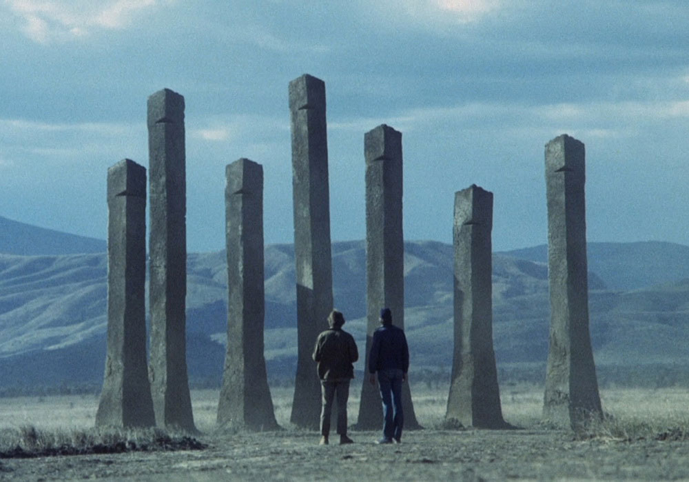 Il y a un peu de tout ça dans Phase IV, pur produit de son époque. Dans un premier temps, le film de Saul Bass s’échine à poser les bases d’une stratégie de guerre entre une colonie de fourmis et les deux scientifiques affectés à leur éradication – chacun avançant ses pions avec calme et méthode, comme s’ils partageaient une partie d’échecs, de Risk ou de Stratego (comme vous le constatez, confinement 2020 © oblige, on a ressorti les jeux de société). Saul Bass et son scénariste Mayo Simon prennent le temps de poser leurs personnages humains, radicalement différents. D’un côté, nous avons Hubbs (Nigel Davenport), le scientifique extrême, froid, distant, n’ayant en tête que sa « mission » en tant que chercheur – peu lui importe que des morts viennent parsemer son parcours jusqu’à la connaissance. « People get killed sometimes » répondra-t-il simplement, sans même jeter un œil sur les cadavres jonchant le sol. De l’autre côté, Lesko (Michael Murphy) est un scientifique plus fantasque, volontiers blagueur et semblant dans un premier temps ne pas prendre trop au sérieux sa mission de compréhension des fourmis. Il semble de plus et des les premières séquences du film être sensible au charme de la gent féminine, et en particulier de la jeune Kendra (Lynne Frederick). Époque oblige, on peut supposer qu’il s’agit d’un idéaliste aux idées farouchement opposées à toute forme de guerre ; contrairement à son confrère, son intérêt et sa volonté de communiquer avec les fourmis est purement théorique (comme il le déclare lui-même au début du film, « I’m strictly a pencil and paper guy », habilement traduit dans la VF par « je suis un homme de tableau noir ») et il ne semble prendre conscience de la réalité de leurs desseins que dans le dernier acte du film – ce qui le poussera à agir d’ailleurs.