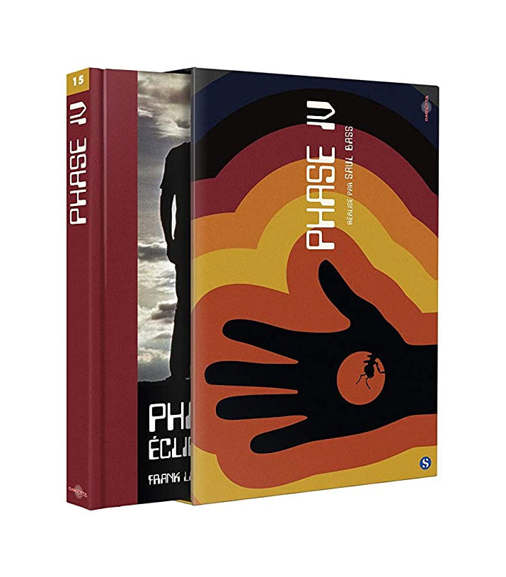 A moins que vous n’ayez à la maison un ado en pleine crise d’hormones (et dans ce cas, on vous souhaite bien du courage pour la période de confinement), vous admettrez sans doute avec nous que « 15 » est un bien beau nombre, qui mérite même d’être salué, applaudi à sa juste valeur. #15 est donc le numéro de Phase IV au cœur de l’indispensable série des « Éditions ULTRA COLLECTOR », la prestigieuse collection de Blu-ray initiée fin 2015 par Carlotta Films avec la sortie de Body double. Quinzième film de la série, quinzième film incontournable vous l’aurez compris, d’autant qu’il s’agit d’une édition limitée, numérotée à 2500 exemplaires et dont le visuel a été créé exclusivement pour cette édition par le talentueux Scott Saslow, artiste spécialisé dans la création d’affiches alternatives, de visuels pour le cinéma et les éditions vidéo, et autres objets geek et pop. On notera donc d’entrée de jeu la classe absolue de cet imposant coffret, contenant un gros livre de 200 pages intitulé « Phase IV, Éclipse de l’humanité », passionnant ouvrage rédigé par Frank Lafond, et contenant également de nombreuses photos d’archives. Il s’agit d’un vrai et beau travail de retour sur les archives liées au film, un vrai travail de fourmi si vous nous permettez ce jeu de mot absolument désopilant. On y reviendra sur les différentes versions successives du scénario, le processus de montage, ou encore sur le tournage en lui-même, réparti entre le Royaume-Uni, les États-Unis et le Kenya. On notera que le livre, comme d’habitude avec les « Éditions ULTRA COLLECTOR », est présenté comme un vrai livre de cinéma, avec une belle couverture cartonnée, le tout étant glissé dans un étui à l’italienne. On salue donc à nouveau l’attachement de Carlotta Films à en donner le maximum au consommateur français avec un véritable et bel objet de collection, auquel l’éditeur rajoutera, bien sûr, une belle poignée de suppléments sur le Blu-ray du film.