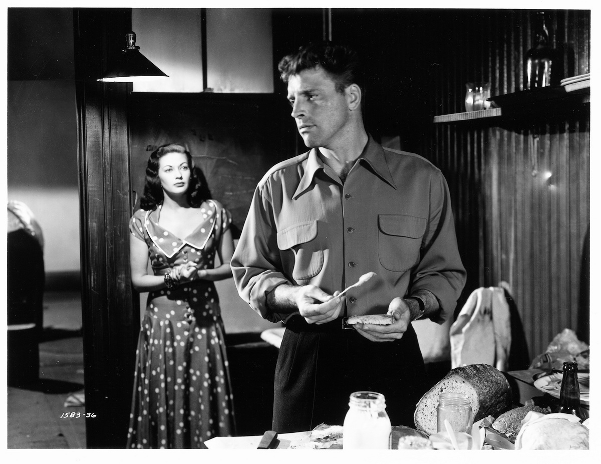 Derrière la caméra, Robert Siodmak prend le parti de l’épure, et livre avec Pour toi j’ai tué un spectacle tendu et presque intemporel. Le sens du cadre dont il fait preuve est saisissant, opposant ou rapprochant ses personnages dans les mêmes plans, jouant sur les positions et les regards avec une virtuosité de tous les instants – ce qui est d’autant plus remarquable que la photo du film signée Frank Planer s’avère réellement de toute beauté. Et outre les deux premiers rôles tenus à la perfection par Burt Lancaster et Yvonne De Carlo, on notera également la présence de Dan Dureya dans la peau du troisième larron composant ce triangle amoureux destructeur. Impressionnant dans son rôle de caïd aussi imprévisible que dangereux, l’acteur ne parvient cependant pas au fil du film à se défaire de l’image qu’il fait, peut-être malgré lui, naître dans l’esprit du spectateur lors de sa première apparition : celle du truand incarné par un Richard Widmark alors débutant dans Le carrefour de la mort (Henry Hathaway, 1947). On a cela dit connu pire référence !