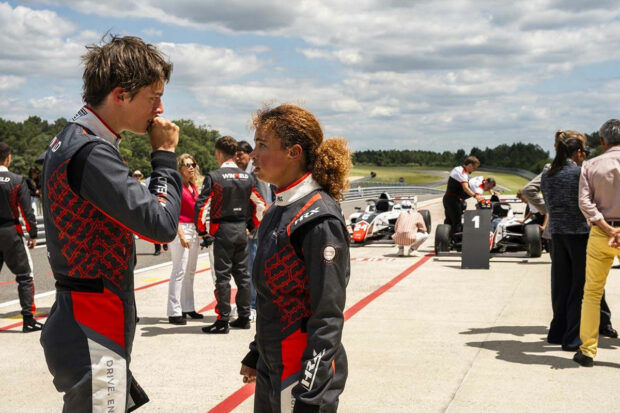 Et puis, on admettra qu’au fil du récit, Rapide se permet occasionnellement quelques digressions inattendues et assez savoureuses, qui permettent au film de sortir de la routine et de trouver sa propre petite musique. On pense par exemple à cette scène durant laquelle le personnage incarné à l’écran par Paola Locatelli se fait recaler d’une écurie parce qu’elle a « trop de caractère ». On croirait entendre un recruteur de start-up en train de refuser une candidate parce qu’elle n’a pas de compte LinkedIn premium. Derrière l’humour, le film interroge les normes sociales, les stéréotypes, et la manière dont les institutions freinent les élans individuels. Le placement des caméras, souvent en plongée sur Max, souligne son isolement dans un monde qui la regarde de haut. Rapide n’est pas un film de bagnoles, c’est un film sur la vitesse intérieure – celle qui te pousse à avancer même quand tout le monde te dit de freiner.