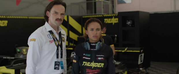 Dans Rapide, le mercenaire du cinéma d’action français Alban Lenoir incarne Stanislas, ancien pilote fantasque reconverti en mentor borderline. Le genre de type qui vit dans un château, collectionne les voitures et parle comme s’il avait avalé un dictionnaire de citations motivantes. On pourrait croire à une caricature, mais le film parvient à lui donner une vraie épaisseur, notamment grâce à une direction d’acteurs qui évite le cabotinage. Bon, Alban Lenoir en fait toujours des caisses, mais c’est le rôle qui veut ça. Et puis, il faut bien un peu de folie dans ce monde de virages serrés et de chicanes prises à pleine vitesse. Signe des temps probablement, Rapide explore aussi, en filigrane, la question du genre dans le sport, sans jamais tomber non plus dans un discours militant : le féminisme ici n’est pas brandi comme un étendard, mais intégré dans la narration, ce qui le rend d’autant plus percutant.