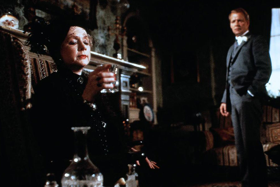 Et bien sûr, il y a l’autre grosse valeur ajoutée : celle d’un casting réellement haut de gamme, non seulement porté par Peter Ustinov mais également par une poignée d’acteurs étonnants, que Michael Winner exploite vraiment de façon remarquable. On commencera bien sûr en citant la toujours inquiétante Piper Laurie, qui s’avère ici tout particulièrement glaçante, flippante, encore plus peut-être d’ailleurs dans les flash-blacks la mettant en scène, dans lesquels elle apparaît comme un véritable spectre, fantomatique, bizarre, menaçant. Autre physique singulier mis en scène par Winner dans Rendez-vous avec la mort : celui de Jenny Seagrove, dont le potentiel inquiétant serait exploité à fond quelques années plus tard par William Friedkin dans La nurse, et qui ici campe un subtil mélange de force et de fragilité. Au rayon des fortes personnalités, on notera également la présence de Lauren Bacall, impeccable en notable imbue de sa personne, qui s’avère néanmoins attachante par certains aspects. Dans des rôles un peu moins importants, c’est également toujours un plaisir de retrouver David Soul – dans un rôle fort éloigné de celui de Ken « Hutch » Hutchinson – ainsi que Carrie Fisher – dans un rôle fort éloigné de celui de la princesse Leia.