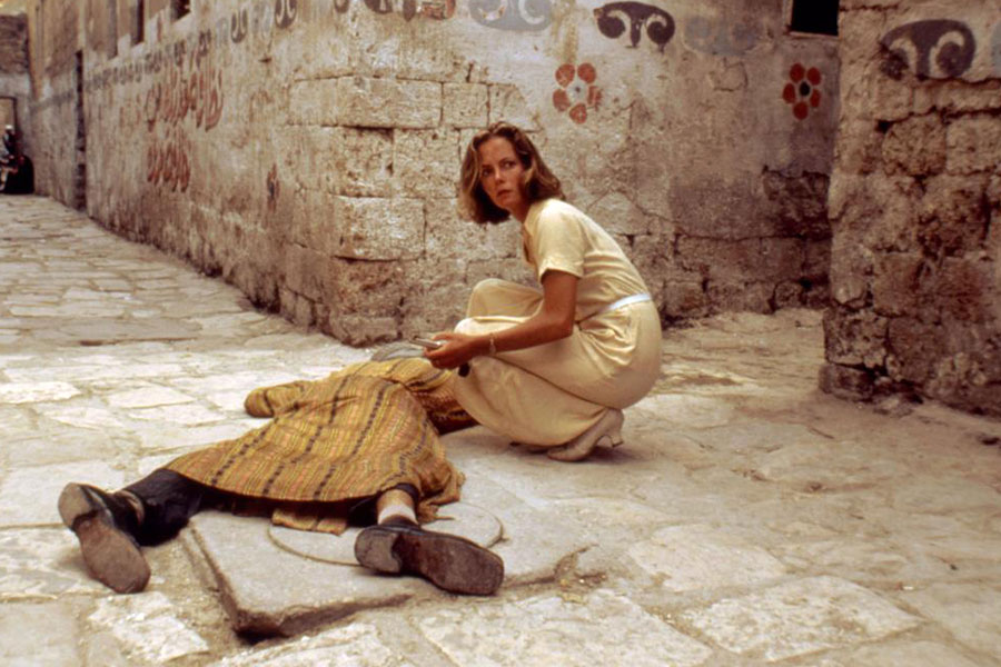 Réalisé en 1988 pour le compte de la Cannon, Rendez-vous avec la mort marquait donc les adieux de Peter Ustinov à Hercule Poirot : des adieux en grande pompe si l’on considère le budget et le casting « quatre étoiles » du film. Derrière la caméra, on retrouve Michael Winner, grand artisan du cinéma populaire, qui assure aussi le montage du film, tout en ayant également contribué au scénario, lui apportant une touche de modernité et d’humour vraiment plaisante. La photo, délicieusement exotique, est signée David Gurfinkel, grand habitué de la Cannon, et la musique par l’immense Pino Donaggio. Autant dire que la réunion de ces talents donnera naissance à l’écran à une poignée de séquences assez époustouflantes, notamment celle qui suit le retour du personnage du docteur King (Jenny Seagrove) sur le site de fouilles et sa découverte du cadavre, véritable prodige de timing, de montage et de mise en scène. On retrouve également occasionnellement certaines des obsessions de Michael Winner, surtout dans la manière dont il filme les bad-fonds les plus interlopes de Jérusalem. Le rythme du film est par ailleurs particulièrement bien tenu, et même si l’on connaît globalement le déroulement de l’histoire, il sera littéralement impossible de s’ennuyer tant les séquences s’enchaînent avec malice, s’avérant même parfois surprenantes dans les ajouts qui ont été faits à la trame originale.