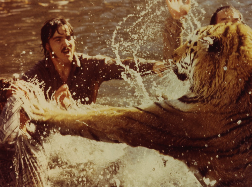 Cinq ans de tournage et rien de moins que 150 animaux furent nécessaires à la mise en boite de Roar, qui fait partie de ces long-métrages dont le tournage ponctué d’accidents et d’événements catastrophiques en tous genre est aussi (voire plus) mythique que le film en lui-même.