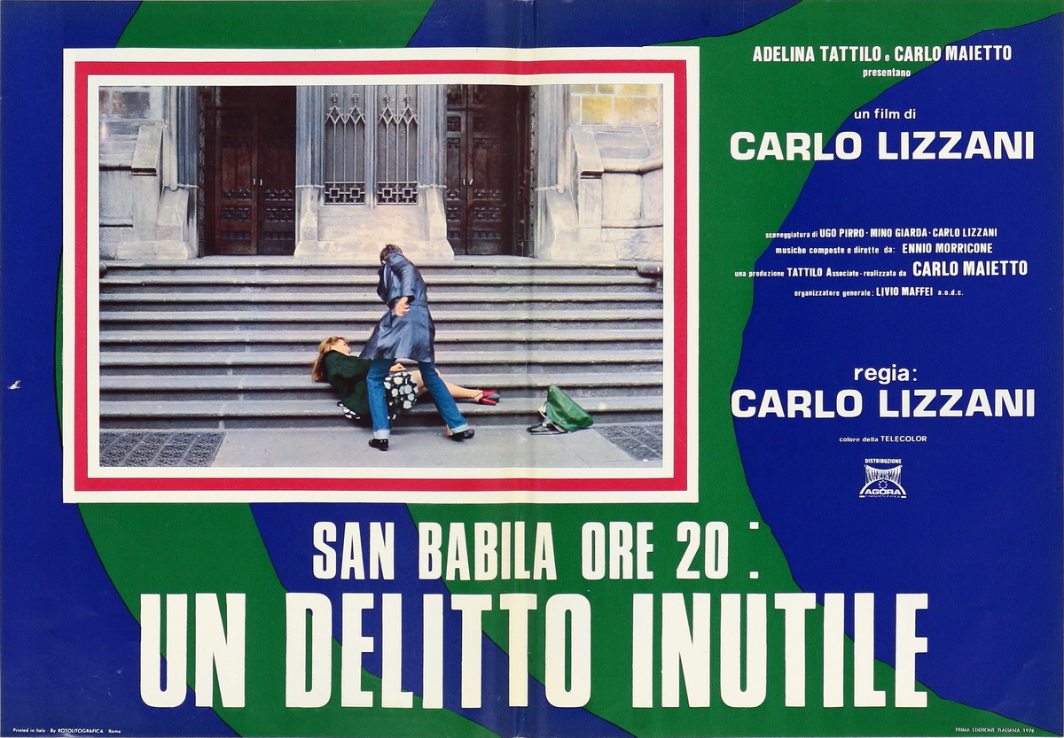 Sorti en 1976 en Italie (et possiblement distribué sur une partie du territoire français dans la première moitié des années 80 sous le titre Tuer pour tuer), San Babila : Un crime inutile est un film pour le moins singulier, qui dut poser quelques problèmes de conscience à ses producteurs lors de sa sortie dans les salles de cinéma. Ne sachant probablement pas trop comment « vendre » le film de Carlo Lizzani, les producteurs ou les distributeurs ont choisi d’opter pour une affiche bien agressive. Etant donné que le casting du film était quasi-uniquement composé d’inconnus du grand public, cette dernière nous montrait deux pognes serrées sur des flingues (à priori des Walther P38), ceux-ci étant pointés en direction de silhouettes aux formes suggestivement féminines, présentant la particularité de proposer des cibles placées sur les zones les plus sensibles de leur anatomie (poitrine, région pelvienne). Cette affiche, subtil mélange de violence et de provocation, nous ramène directement aux grandes heures du « poliziottesco » ou néo-polar italien, genre très populaire durant la décennie 70. Ce grandiose sous-genre du bis mettait le plus souvent en scène des faits divers sordides dans l’Italie des « années de plomb », et était peuplé de personnages borderline, anti-héros anarchistes et/ou inadaptés.