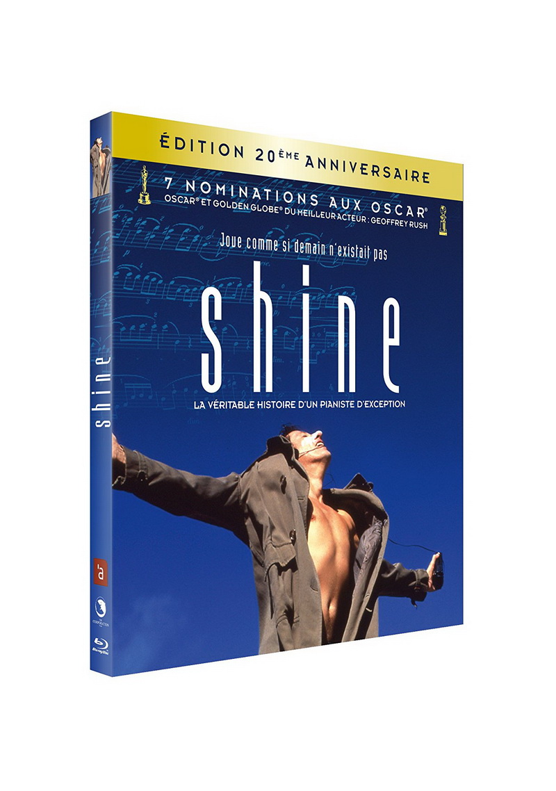 Disponible chez Showshank Films, Shine s’offre donc un très attendu lifting Haute-Définition sur galette Blu-ray, et aussi bien côté image que côté son, le master proposé par l’éditeur est de bonne tenue ; le film est proposé au format 1.85:1 respecté et encodé en 1080p. Le mixage audio est proposé en DTS-HD Master Audio 2.0 d’origine, VF et VO étant tout à fait claires et sans souffle. Le grain d’origine est préservé, et l’ensemble nous permet de (re)découvrir ce chef d’œuvre porté par un Geoffrey Rush impérial dans des conditions chaudement recommandables.