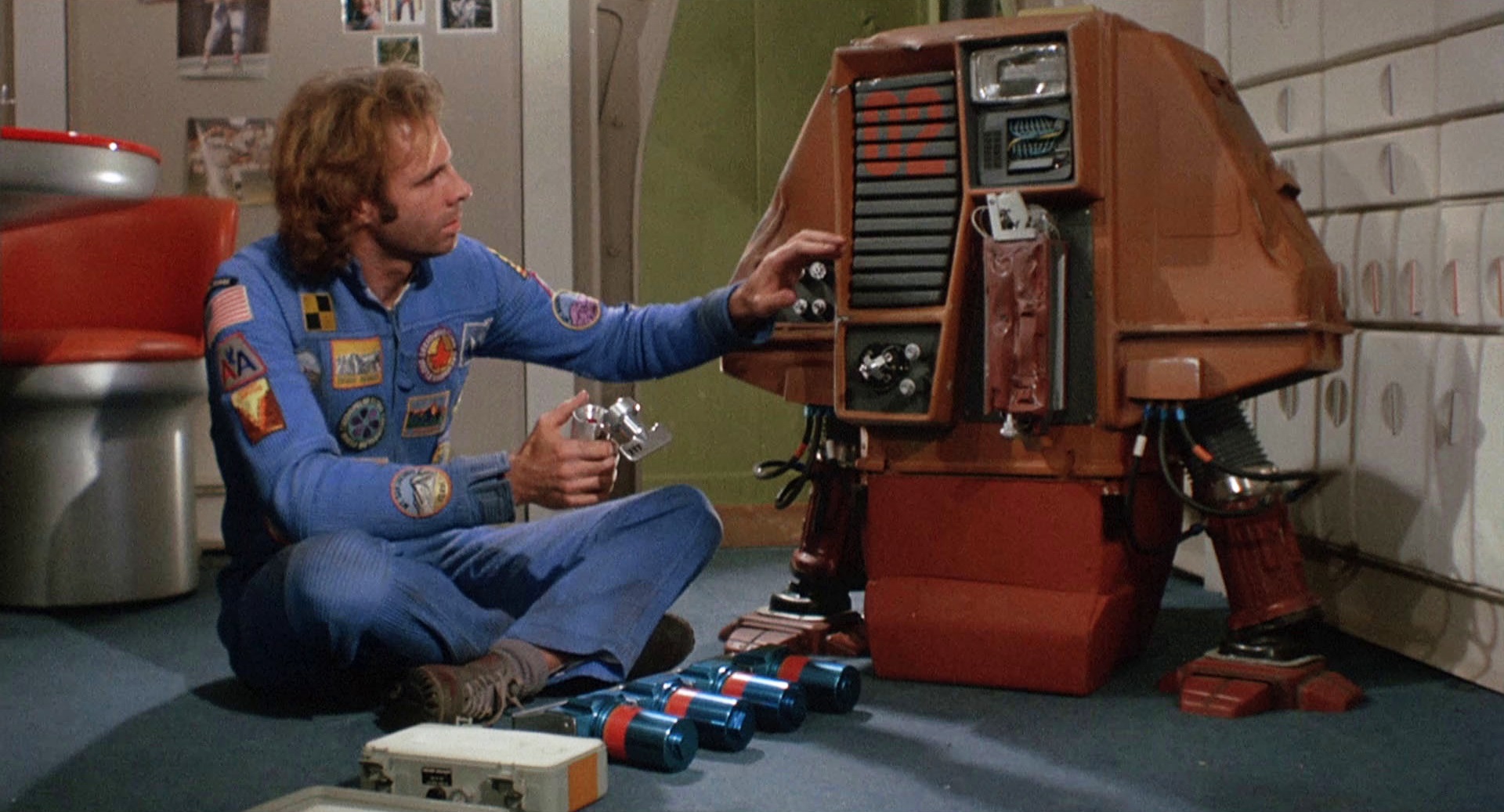 Cette nouvelle livraison comportera donc comme d’habitude à la fois le film sur support DVD et Blu-ray en version restaurée en 2K. Le film en HD bénéficie d’ailleurs d’un upgrade assez époustouflant : le master est d’une stabilité exemplaire, le grain d’origine est préservé, la définition est le piqué sont considérablement accrus… C’est du très beau travail de restauration. Comparée à l’édition Blu-ray éditée par Universal l’année dernière aux États-Unis, Wild Side semble avoir boosté les contrastes, peut-être pour d’avantage coller aux standards du Technicolor de l’époque ; cela dit comme souvent les contrastes accentués semblent boucher les noirs durant les séquences les plus sombres. Qu’à cela ne tienne, c’est vraiment histoire de couper les cheveux en quatre : si vous n’avez pas vu Silent running depuis longtemps, le fait est que cette édition vous permettra de le redécouvrir dans les meilleures conditions possibles. Du côté des enceintes, VF d’époque et VO anglaise nous sont proposées, en DTS-HD Master Audio 2.0, en mono d’origine évidemment. Les dialogues sont clairs, les ambiances plutôt bien préservées, sans souffle. On notera une nette domination de la version originale, plus naturelle et plus ample, la version française étant par ailleurs mixée assez bas, et nécessitera probablement de jouer avec la molette de volume de votre ampli pour être tout à fait audible.