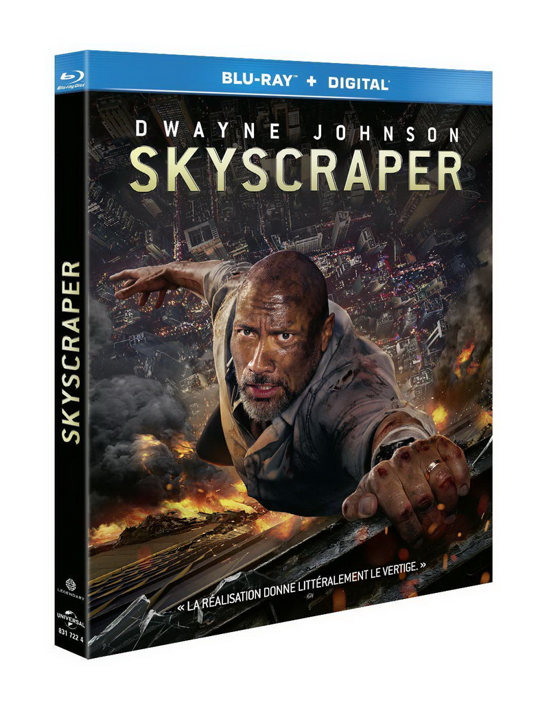 Le Blu-ray de Skyscraper édité par Universal Pictures représente la référence, le top du top en matière de Blu-ray : le piqué est précis, avec des couleurs somptueuses, des noirs profonds et des contrastes au top niveau. La définition et l’encodage sont irréprochables, tout est littéralement impeccable, il n’y a absolument rien à redire. Côté son, le film est proposé dans un puissant mixage Dolby Atmos, qui sera décodé faute de matériel adéquat en Dolby TrueHD 7.1. La version française bénéficie quant à elle d’un mixage en Dolby Digital+ 7.1 ; les deux pistes sonores se valent donc pour une immersion absolue au cœur du film, assurant un spectacle sonore extraordinaire, d’un dynamisme littéralement époustouflant.