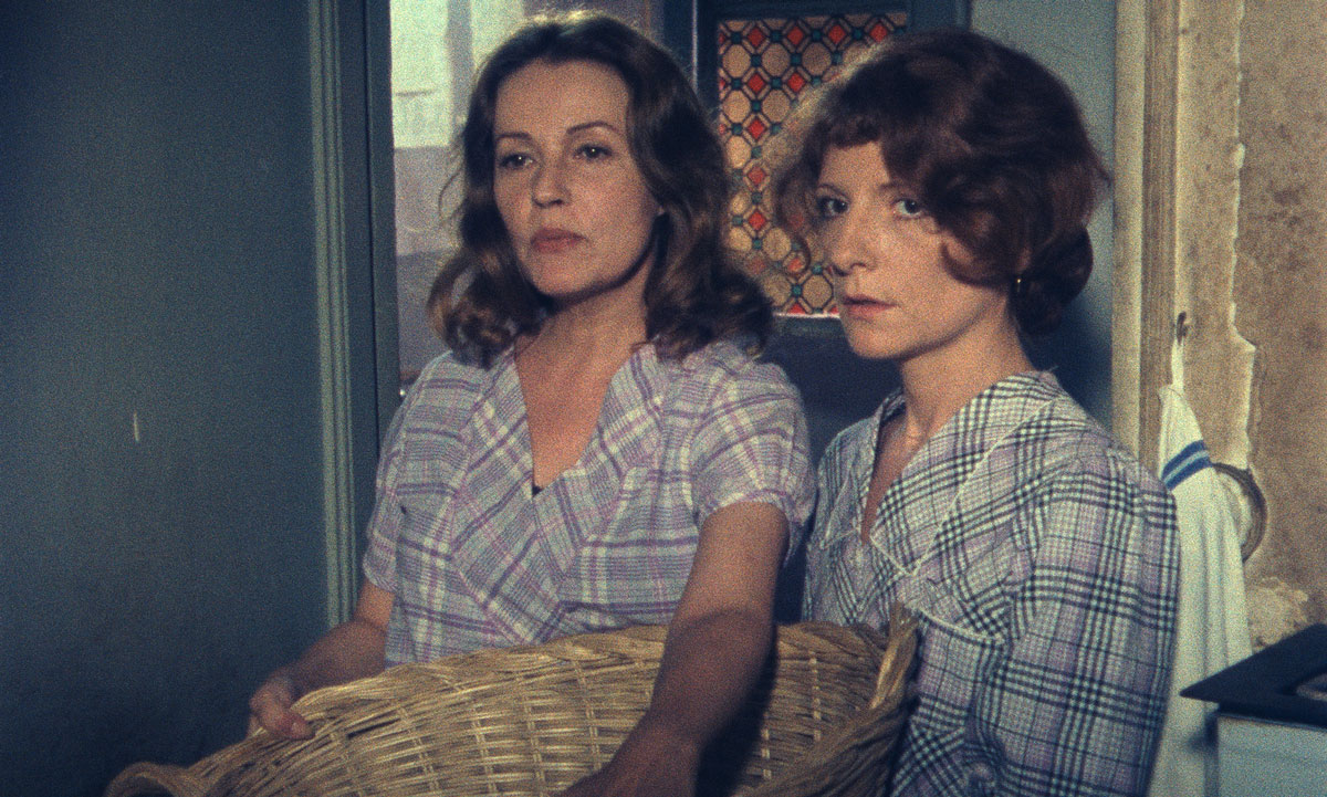 Souvenirs d’en France, c’est aussi en grande partie une histoire de femmes. Elles ont certes tendance à avancer discrètement leurs pions sur l’échiquier de la répartition des rôles, en pleine évolution. Mais finalement, rien ou presque ne se fait sans leur impulsion. A l’image de leurs méthodes sournoises, leurs interprétations respectives font preuve d’une opacité insaisissable pas sans charme. Après des débuts d’ouvrière peu convaincants, Jeanne Moreau devient ainsi la stratège avisée de la survie économique de la famille. Elle n’y est certes pas aussi machiavélique et majestueuse que dans ses films les plus emblématiques, mais elle incarne néanmoins le reflet saisissant de la petite parvenue, à qui le costume de la respectabilité ne va jamais tout à fait. En face d’elle, le personnage de Marie-France Pisier fait beaucoup moins d’efforts pour s’intégrer. Grâce à l’interprétation énigmatique de l’actrice trop tôt disparue, Régina restera un éternel grain de sable dans le mécanisme du conformisme à la française, ne sachant pas, par exemple, à quel moment se lever pendant la fête cérémonielle de son mariage au début du film, ni comment exprimer avec intelligence subversive sa moquerie des aventures romantiques vécues au cinéma par Greta Garbo et Robert Taylor. »