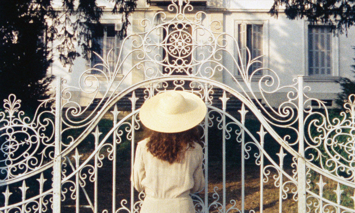 Une des images récurrentes de Souvenirs d’en France est ce portail blanc en fer, qui sépare la résidence seigneuriale du reste du monde. Le symbole est sans doute choisi avec une ingéniosité discutable. Toujours est-il que cette frontière entre la richesse et la pauvreté servira à plusieurs reprises de lieu de passage aux deux personnages principaux du film. (…) Puis, à la fin du film, le motif revient, désormais comme une porte de prison, de l’autre côté de laquelle le pays prend de la vitesse – comment ne pas interpréter, depuis le point de vue contemporain et donc en plein mode anachronique, le train qui passe à toute allure devant la grille comme un signe annonciateur de l’avènement de l’ère du TGV et du maillage différent du territoire qu’elle allait apporter ? – pendant que la vieille dynastie de la fortune provinciale est appelée à une douce mort inéluctable.