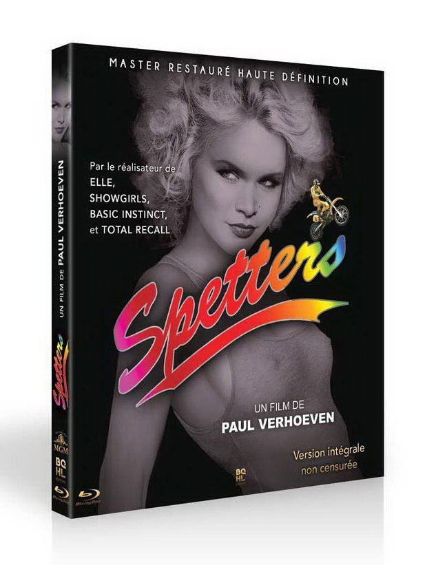 Longtemps invisible à cause de problèmes de droits, Spetters était le grand absent de l’indispensable coffret DVD « Paul Verhoeven » édité par Metropolitan en 2004, qui regroupait pourtant l’intégralité de ses autres films tournés aux Pays-Bas. Trois ans après une première édition en DVD uniquement, et toujours grâce à BQHL Éditions, le film est maintenant disponible en France en Blu-ray et en version intégrale non censurée, restaurée en haute définition par le Eye Film Museum Institute (Pays-Bas). Les qualités techniques du film de Verhoeven et la photo signée Jost Vacano le méritaient, BQHL l’a fait, avec une édition qui plus est techniquement solide.