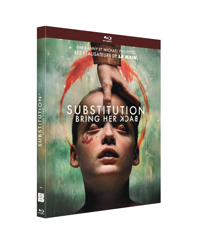 Le Blu ray de Substitution – Bring Her Back, édité par Sony Pictures, est disponible depuis quelques semaines dans un boîtier accompagné d’un fourreau élégant, reprenant l’affiche du film avec un vernis sélectif du plus bel effet. L’image Haute-Définition qui nous est ici proposée par Sony impressionne par sa précision : les noirs sont profonds sans jamais boucher les détails, les contrastes sont maîtrisés, et les teintes désaturées du film conservent leur subtilité sans virer au gris uniforme. Les scènes nocturnes, nombreuses dans Substitution – Bring Her Back, bénéficient d’une lisibilité exemplaire, et les textures — notamment celles des décors domestiques — ressortent avec une finesse qui renforce l’atmosphère anxieuse du récit. Quelques plans très sombres montrent un léger bruit vidéo, mais rien qui ne vienne gâcher l’expérience. Côté son, le Blu-ray nous propose deux mixages DTS HD Master Audio 5.1 (VO et VF), tous deux d’excellente tenue. La version originale se distingue peut-être par une spatialisation légèrement plus précise, notamment dans les chuchotements et les effets de présence qui glissent d’une enceinte à l’autre comme des ombres mal élevées. La VF reste néanmoins très solide, avec des dialogues clairs et un équilibre général respecté, même si la dynamique paraît légèrement moins ample que sur la VO. Les basses, discrètes mais efficaces, soutiennent les moments de tension sans jamais écraser la scène sonore. Un disque techniquement très propre, fidèle à la réputation de Sony Pictures.