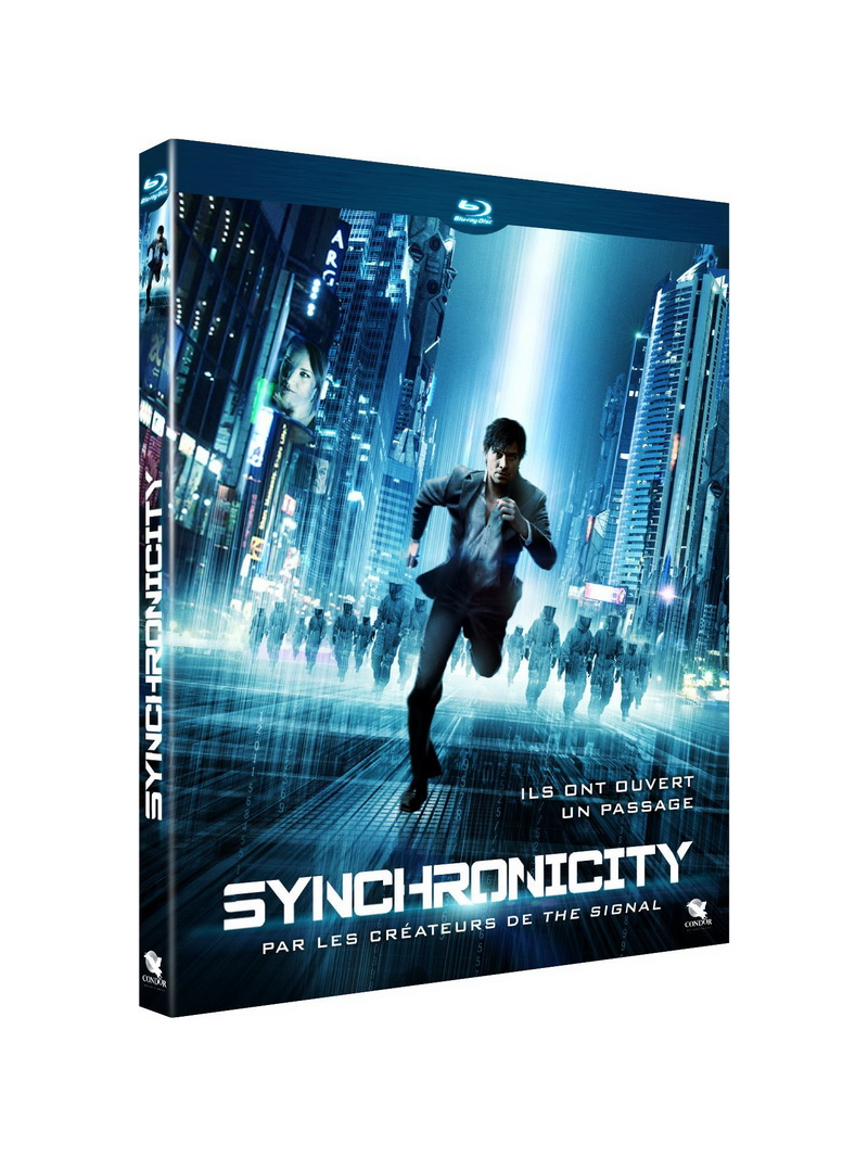 Le Blu-ray de Synchronicity édité par Condor Entertainment fait le boulot et nous propose une immersion totale dans le film : si l’on excepte un piqué un peu doux et l’incorrigible recours de l’éditeur à un défilement en 1080i (raccourcissant le film d’un peu plus de trois minutes), l’image est tout à fait satisfaisante, rendant honneur aux tons gris / froids imaginés par Eric Maddison pour le film. Côté enceintes, VF et VO sont proposés en DTS-HD Master Audio 5.1, dynamiques, très finement spatialisés, avec des petits bruits d’ambiance bien stressants et des basses sachant tirer leur épingle du jeu.