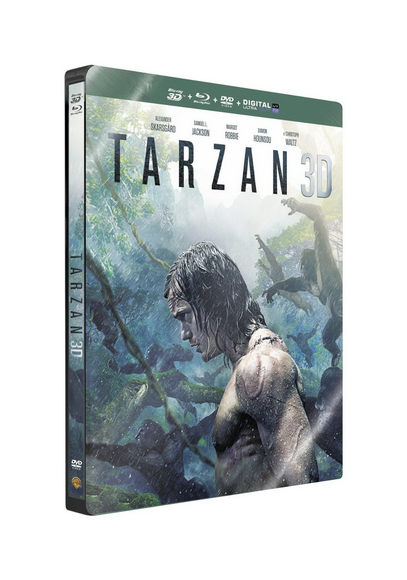 Avec presque 1,4 millions d’entrées en France, Tarzan semble avoir rempli toutes ses promesses de notre côté de l’Atlantique, et le Blu-ray édité par Waner bros. rend clairement honneur à cet engouement populaire, avec un transfert HD de toute beauté et à nouveau une volonté de privilégier la VF pour ce qui est des mixages audio. La définition est irréprochable, le piqué d’une précision redoutable (malgré quelques incompréhensibles baisse de régime par ci par là), les contrastes affichent une belle pêche, et les couleurs sont éclatantes. Visionné en 3D, le spectacle prend toute son ampleur : l’immersion est absolue, les jaillissements sont nombreux et l’ensemble donne vraiment dans le grand spectacle (brume, lianes, armes et fusils, etc), même si les scènes en gros plans perdent un peu en impact pour la simple raison que le film est tourné et proposé en Cinemascope 2.40. Pour ce qui est du son, la VF s’offre un puissant mixage en Dolby Atmos, qui sera décodé en l’absence de matériel adéquat en Dolby TrueHD ; la VO devra quant à elle se contenter d’un immersif Dolby Digital +. A nouveau, la branche française de Warner bros. Fait donc le choix de privilégier la VF en Haute-Définition, ce qui est un vrai « plus » pour la plupart des consommateurs de l’hexagone, qui visionne le plus souvent ce genre de film en version française. Dynamisme et spatialisation impeccable sont naturellement au rendez-vous.