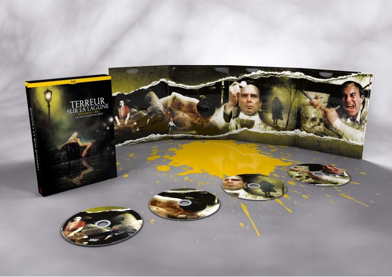 Aussi inattendue que réjouissante, la réapparition de Terreur sur la lagune s’est donc faite sous les couleurs du Chat qui fume, dans un coffret « luxe » auxquels nous a habitué l’éditeur depuis la sortie du Venin de la peur en 2015. Le film d’Antonio Bido débarque donc dans un sublime digipack quatre volets contenant le Blu-ray du film + 2 DVD, ainsi que le CD de la très efficace bande-originale du film. Les collectionneurs sont aux anges, d’autant que comme à son habitude, l’éditeur français a non seulement soigné la qualité de son transfert Haute Définition, mais également veillé au grain en ce qui concerne la qualité des suppléments, qui auront vite fait de faire de ce coffret une nouvelle édition « définitive » à mettre à l’actif du Chat qui fume. Comme d’habitude avec l’éditeur, ce premier pressage est limité à 1000 exemplaires.