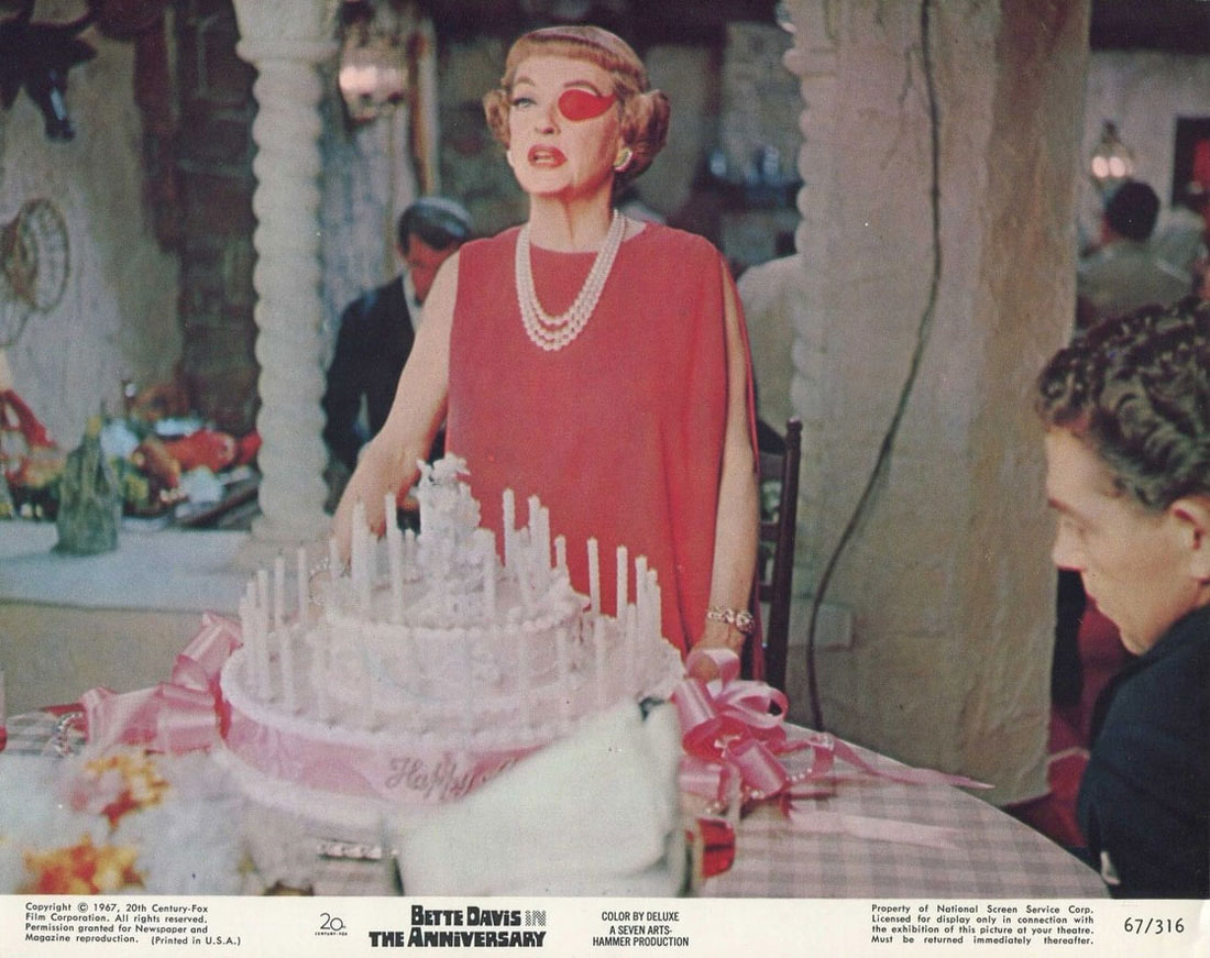 The anniversary marque les retrouvailles de la Hammer Films et de l’actrice Bette Davis, quelques années après Confession à un cadavre. Presque entièrement conçu autour de son personnage, le film de Roy Ward Baker permettait à l’actrice, alors âgée de 60 ans, de prêter ses traits à une mère pour le moins agressive et borderline – un personnage de harpie flamboyante dans la droite lignée de ceux qu’elle se plaisait à incarner dans les années 60.