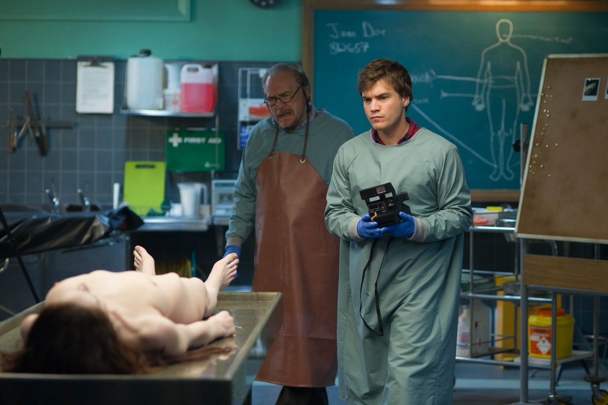 Fort différent de son film précédent, The Jane Doe identity prend quasiment le parti du huis-clos : l’intégralité du film se déroulera en effet entre les murs d’une petite morgue de province. Formaliste ingénieux, Øvredal tire contre toute attente avantage de cette contrainte, aidé il faut l’avouer par un duo d’acteurs assez excellents, composé de Brian Cox et de Emile Hirsch, découvert il y a quelques années dans la comédie The girl next door.