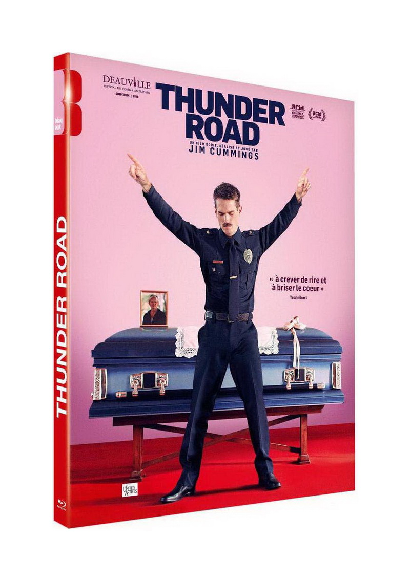 Le Blu-ray de Thunder road – disponible depuis le 8 février chez tous les bons dealers de culture – nous arrive sous les couleurs de Blaq Out, qui, comme à son habitude, a bien soigné sa copie numérique. En effet, côté image, le master 1080p du film s’avère d’une propreté et d’une stabilité impeccables, la définition et le piqué son au taquet, le Blu-ray impose rapidement sa colorimétrie pimpante et ses contrastes solides. Côté son, le film est proposé soit en DTS-HD Master Audio 5.1, dans un mixage parfaitement clair et bien spatialisé, soit en DTS-HD Master Audio 2.0, option plus cohérente si vous visionnez le film sur un simple téléviseur. On notera bien une ou deux petites fautes et/ou approximations au cœur des sous-titres français, mais rien de dramatique : le film de Jim Cummings s’offre une très belle présentation Haute-Définition.