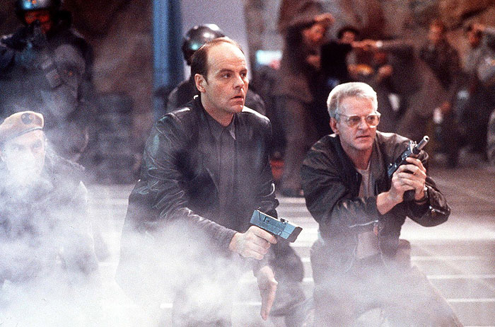Ce qui nous ramène à la marque de fabrique du cinéma de Paul Verhoeven : une trivialité assumée sans le moindre complexe. En alternant à un rythme élevé entre la violence passablement gore et les répliques sous forme de boutade, le réalisateur assure un divertissement de haut vol. Un divertissement foncièrement populaire, soyons bien clairs là-dessus. Mais en faisant appel aux références du film de genre dans ce qu’il a de plus instinctif, le tout sur fond de thèmes musicaux martiaux signés Jerry Goldsmith, Verhoeven entreprend son propre grand détournement des codes et des poncifs.