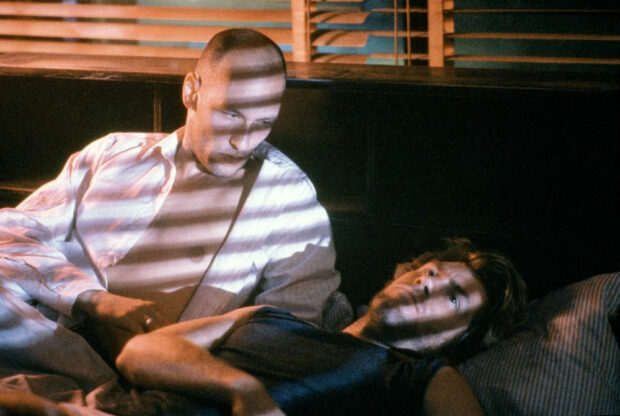 Un zoo la nuit suit l’histoire de Marcel (Gilles Maheu), ex-taulard au regard de chien battu, qui tente de recoller les morceaux avec Albert, son père mourant (Roger Lebel), tout en échappant à deux flics corrompus qui veulent lui faire les poches – et pas seulement au sens figuré. Le film, tourné dans le Montréal nocturne et poisseux de la deuxième moitié des années 80, explore les liens familiaux, la rédemption, et les cicatrices qu’on ne montre pas sur Instagram. Et si l’on faisait un parallèle entre Un zoo la nuit et Naked un peu plus haut, c’est parce qu’au cœur de ces deux films, la nuit n’est pas seulement un décor : c’est un état d’âme. Chaque plan semble suinter une mélancolie urbaine, une solitude qui colle aux murs comme du sperme oublié dans une cabine de peep-show. La photographie de Guy Dufaux, tout en contrastes et en lumières rasantes, transforme les ruelles de Montréal en théâtre d’ombres, où les personnages errent comme des fantômes en quête de sens.