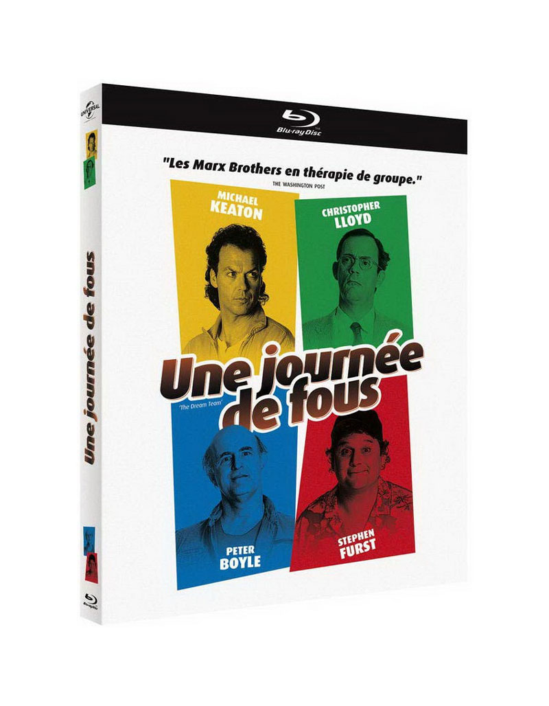 Sorti en France quelques mois après Beetlejuice, le film d’Howard Zieff est tout de même parvenu à réunir près de 180.000 français dans les salles en 1989 : on est loin des 29 millions de dollars réunis par le film au box-office américain, mais cela représente, par exemple, trois fois plus d’entrées en France que Portrait craché d’une famille modèle ou Le plus escroc des deux la même année, si l’on compare cela avec les films mettant en scène Steve Martin à la même époque. Ces chiffres restent donc clairement honorables, surtout au vu de ceux enregistrés en France par les films précédents de Michael Keaton (55.000 entrées pour Mister Mom, 15.000 pour Gung Ho, 10.000 pour Manhattan loto). Avec son intrigue comico-policière suivant quatre évadés de l’asile en cavale dans New York, Une journée de fous est clairement porté par ses quatre acteurs principaux : Michael Keaton donc, Christopher Lloyd – tout droit sorti à l’époque de Retour vers le futur 2, Peter Boyle, inoubliable créature du Frankenstein Junior de Mel Brooks, et Stephen Furst, acteur en revanche complètement inconnu au bataillon en France malgré une apparition dans American college. C’est réellement l’énergie de ces quatre acteurs, d’abord séparés au cœur de New York puis réunis, qui permettra à Zieff d’enchaîner avec brio quiproquos et rebondissements, le tout étant de plus porté par des dialogues souvent très drôles, surtout en VO si vous maîtrisez l’anglais. Car la comédie est avant tout une affaire « culturelle », mais les références et autres punchlines sont relativement bien adaptées par la version française du film, dont le doublage est assuré par des acteurs très connus de l’époque, tels qu’Emmanuel Jacomy, Pierre Hatet, André Valmy, Marc François, Élisabeth Wiener… On y reconnaîtra également les voix de Med Hondo ou d’Élie Semoun dans des petits rôles.