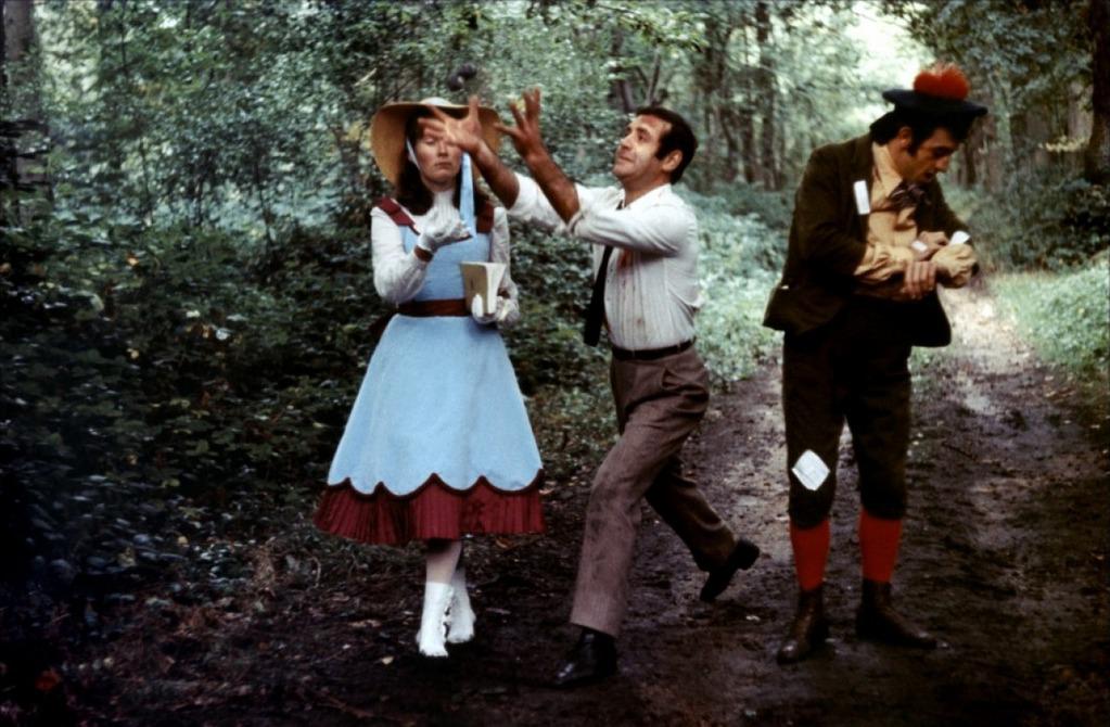 Pas nécessairement le film « de trop », mais le film du « trop-plein », comme nous l’évoquions un peu plus haut. Et de ce ras-le-bol découlera une impression d’agressivité mal contrôlée, puisque plus que jamais Godard semble détester, mépriser au plus haut point les personnages de son film. Et comme il n’aime pas les protagonistes de son récit, il opte pour des acteurs qu’il ne porte pas tellement non plus dans son cœur, et venus du cinéma de Georges Lautner / Michel Audiard. Pour l’anecdote, Mireille Darc évoquait sa rencontre avec Godard dans ses mémoires (« Tant que battra mon cœur », XO Éditions, 2005). Ses propos pourront certainement nous éclairer sur l’état d’esprit du cinéaste à l’époque : « La rencontre a lieu. Godard m’adresse à peine la parole, l’air excédé derrière ses grosses lunettes, et cependant oui, il est d’accord, nous allons tourner ensemble. Quoi ? Il ne me le dit pas. Peut-être ne le sait-il pas encore. Quand je lui demande pourquoi il consent à ce sacrifice, il a cette réponse qui me passe l’envie de rire : Parce que vous m’êtes antipathique, parce que je n’aime pas le personnage que vous êtes dans vos films, comme dans la vie, et que le personnage de mon film doit être antipathique. Ah, j’oubliais : vos cheveux sont trop blonds, faites-les châtain clair. Et venez sans maquillage, juste un peu les yeux, et encore… Bon, je vous rappelle ! ». Plus distancié, mais également plus narquois, Jean Yanne déclarera quelques mois après la sortie du film dans le quotidien Paris Jour : « Pour les gens qu’il dirige, Godard est un metteur en scène tout à fait classique. Je ne vois pas de différence, par exemple, entre Jean Girault et lui. C’est au montage que les genres diffèrent: des scènes qui pourraient être drôles avec Girault deviennent méchantes avec Godard. » Une déclaration réjouissante dans le sens où on suppose que le fait d’être comparé au réalisateur de la série du Gendarme de Saint-Tropez n’a pas du beaucoup plaire à Godard…