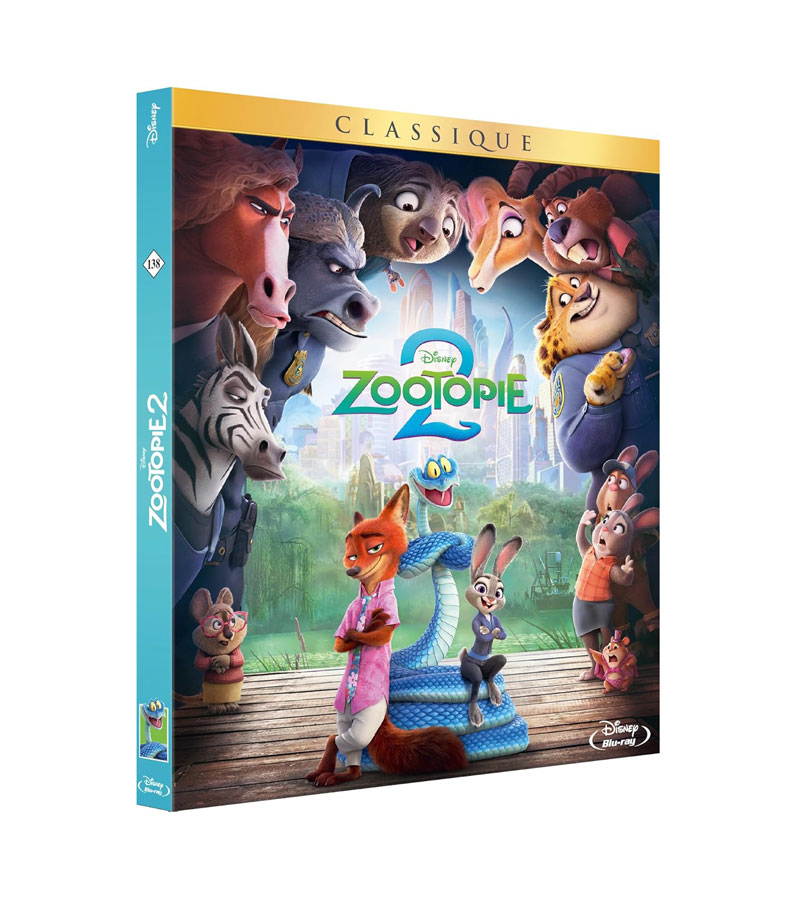 Le Blu-ray de Zootopie 2 édité par Walt Disney France est disponible depuis quelques jours dans un joli boîtier surmonté d’un fourreau avec, comme souvent chez l’éditeur, un visuel éclatant qui met immédiatement dans l’ambiance. Techniquement, il n’y a absolument rien à redire : l’image du Blu-ray est une véritable démonstration technique. Le master Haute-Définition restitue chaque poil, chaque plume, chaque reflet avec une précision chirurgicale. Les couleurs explosent littéralement à l’écran, sans jamais saturer, et les contrastes sont d’une stabilité exemplaire. Les scènes nocturnes, souvent piégeuses en animation, conservent une lisibilité parfaite, avec des noirs profonds et des lumières urbaines qui scintillent comme des lucioles sous amphétamines. Les séquences d’action, nombreuses, profitent d’une fluidité remarquable, sans artefacts ni flou de mouvement. En deux mots comme en cent, Disney nous livre ici un disque qui frôle la perfection visuelle. Ce constat d’excellence, on le retrouvera également du côté des pistes sonores, puisque la galette nous propose deux mixages particulièrement soignés : une VO en DTS-HD Master Audio 7.1 et une VF en Dolby Digital+ 7.1. La version originale offre une spatialisation impressionnante, avec une précision redoutable dans les déplacements, les ambiances urbaines, les effets sonores. Les voix sont claires, parfaitement intégrées au mixage, et la musique bénéficie d’une ampleur remarquable. La version française est quant à elle dynamique, équilibrée, et propose une clarté exemplaire dans les dialogues. Les deux pistes offrent une expérience immersive, chacune avec sa personnalité, et aucune ne prend réellement le dessus sur l’autre. Le spectateur peut choisir en toute tranquillité, sans crainte de perdre en qualité.