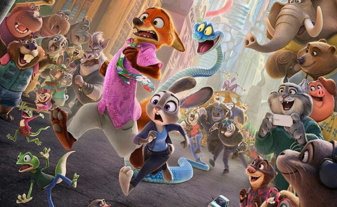 Et comme d’habitude avec les production Disney, Zootopie 2 impressionne aussi par son animation, qui atteint un niveau de détail presque indécent. Le film s’ouvre sur une ville plus grande, plus bruyante, plus saturée de détails qu’un cerveau humain normalement constitué ne peut en absorber en une seule séance. Les artistes Disney semblent avoir décidé de transformer chaque plan en puzzle géant, où même les panneaux publicitaires ont une vie intérieure. Les poils, les plumes, les écailles, les reflets dans les yeux : tout est absolument superbe. De plus, le film joue constamment avec les textures, les lumières, les mouvements de foule, comme s’il voulait prouver que l’animation peut rivaliser avec n’importe quel blockbuster live-action. Le film devient alors une sorte de vitrine technologique, mais une vitrine habitée, vivante, jamais froide.