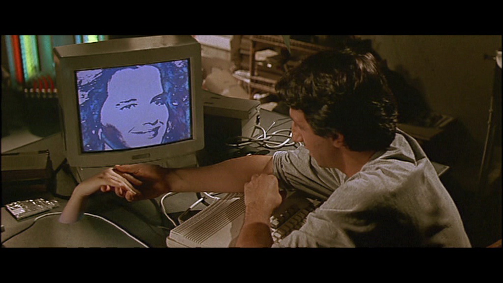À quoi tu penses-tu ? est donc une vraie surprise de petite comédie française, que l’on redécouvre littéralement de nos jours, blindée de bonnes idées et de trouvailles visuelles : on pense notamment à la séquence d’ouverture, avec ses sous-titres visibles par les personnages, aux délires obsessionnels ou schizophrène du héros, plutôt bien servis par des dialogues occasionnellement très efficaces, ou encore au virage final versant dans une esthétique cyberpunk cheap ou disons, hum, « à la française »… Grand habitué du cinéma populaire, Didier Kaminka propose donc quelques très jolies séquences, poétiques, drôles ou efficaces selon les cas. Par exemple, le film de « Tim Tarmush » qui ouvre À quoi tu penses-tu ? dénote d’une certaine maîtrise dans le recyclage de l’esthétique du cinéma américain de l’époque.