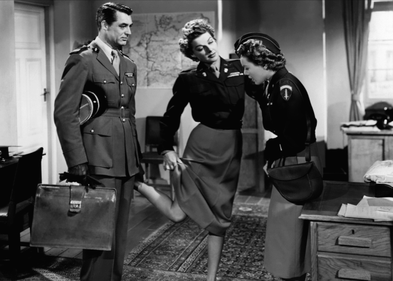 Mais la réussite du film était quasiment jouée d’avance : basée sur le récit (autobiographique) d’Henri Rochard, officier belge fiancé à une américaine durant la deuxième guerre mondiale s’étant vu obligé d’utiliser un formulaire normalement réservé aux femmes afin de rentrer sur le territoire américain, Allez coucher ailleurs s’inscrivait de toutes façons parfaitement dans la veine des « screwball comedies » chères à Hawks, d’autant que Cary Grant avait déjà largement cultivé l’ambiguïté « masculin / féminin » au détour d’une séquence assez monumentale de L’impossible monsieur Bébé. Rien n’était laissé au hasard du côté du scénario non plus, puisqu’on y retrouvait les noms connus de Charles Lederer (La dame du vendredi, qui réunissait également Hawks et Cary Grant) et Hagar Wilde (L’impossible monsieur Bébé encore).