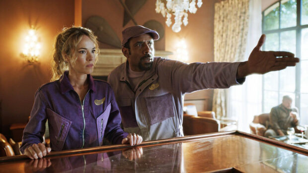 Le casting est à la hauteur de l’ambition du film. Élodie Fontan, en Raphaëlle, incarne avec brio l’ange carriériste, tiraillée entre ambition et compassion. Dans le rôle de Gabriel, Romain Lancry (Taxi 5, Demi-sœurs…) apporte sa nonchalance et son habituel côté décalé. Shirine Boutella et Julien Pestel, en humains pris dans la tourmente céleste, font preuve d’une justesse étonnante, sans surjeu ni mièvrerie. Mention spéciale à François Berléand en Cupidon à moitié clodo, à Simon Astier en superviseur céleste et à la toujours excellente Zabou Breitmann en directrice adepte du « ni oui ni non » inversé. Anges & Cie ne cherche pas forcément à faire briller ses acteurs, ni à les mettre en évidence par rapport aux autres, mais au contraire à les faire exister dans un univers cohérent, ce qui confère au film de Vladimir Rodionov une dimension chorale tout à fait appréciable. Rafraichissant et tout à fait recommandable, Anges & Cie nous propose donc une parenthèse cinématographique douce, drôle, et légèrement irrévérencieuse, le tout avec une touche d’humour absurde et une pincée de poésie. A découvrir !